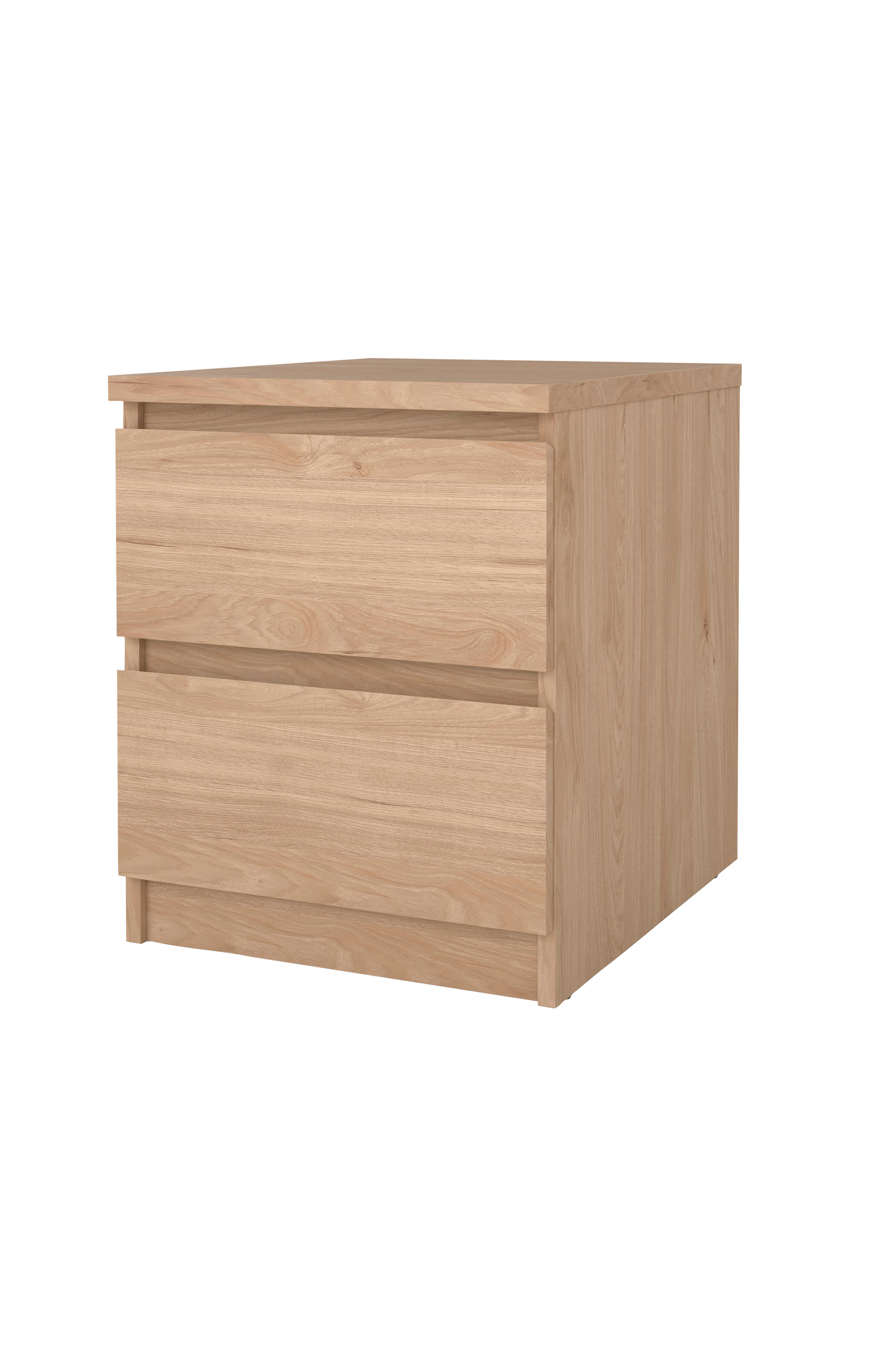 Nattduksbord blir ofta navet i det dagliga livet i ett sovrum. Med plats för en lampa, väckarklocka, bästsäljande roman, mobiltelefon eller andra föremål som behövs inom räckhåll är nattduksbordet med 2 lådor en viktig organisatorisk komponent i ditt rum. Samtida design ger en modern och sammanhängande atmosfär. Två lådskenor i metall gör det möjligt att förvara nödvändigheter utom synhåll. Den enkla designen är perfekt för användning med låga plattformssängar eller i mindre utrymmen och smälter samman med en mängd olika dekorer. Foliefinishen är lätt att rengöra, fläck- och reptålig vilket gör nattduksbordet till ett perfekt val för familjer eller collegeboende.