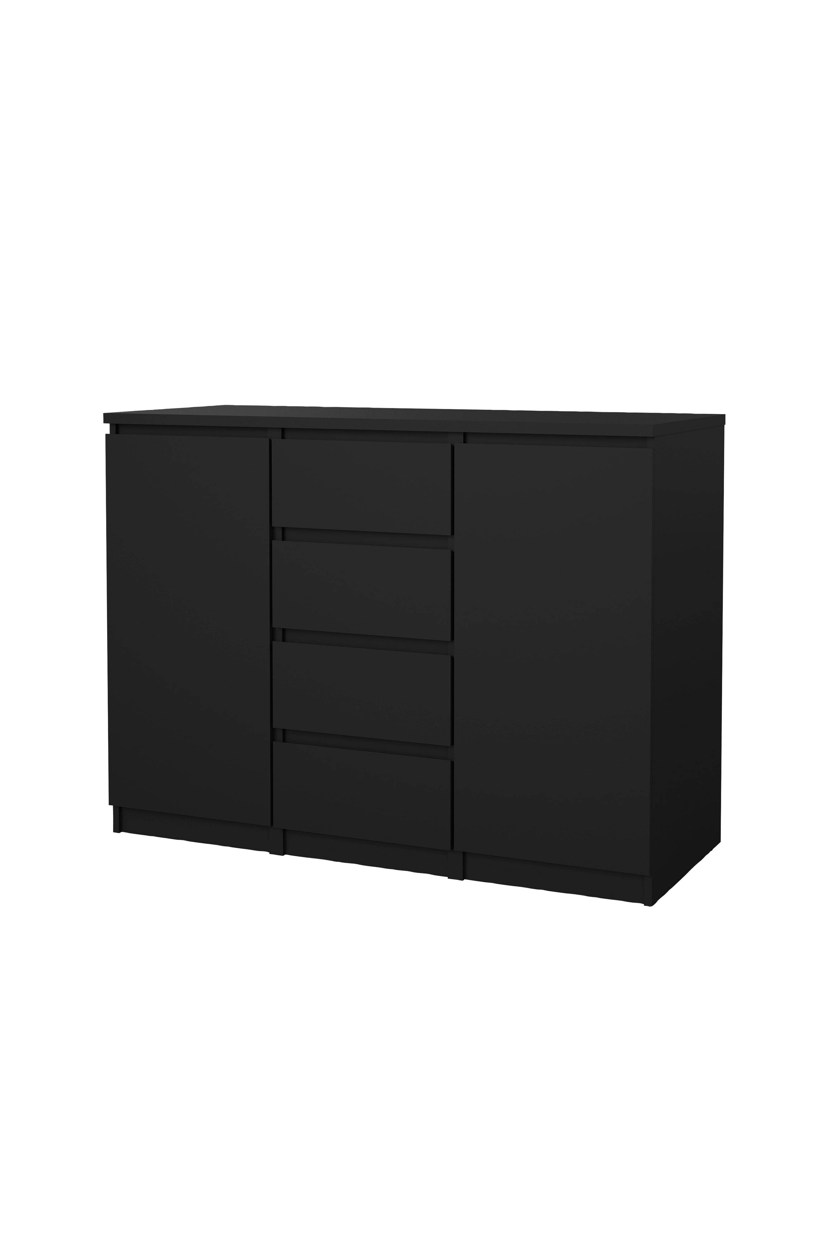 Naia sideboard representerar minimalistisk elegans och funktionalitet. Med ett stängt skåp med två dörrar, två justerbara hyllor och fyra lådor kombineras stil med praktiska förvaringslösningar på ett sömlöst sätt.