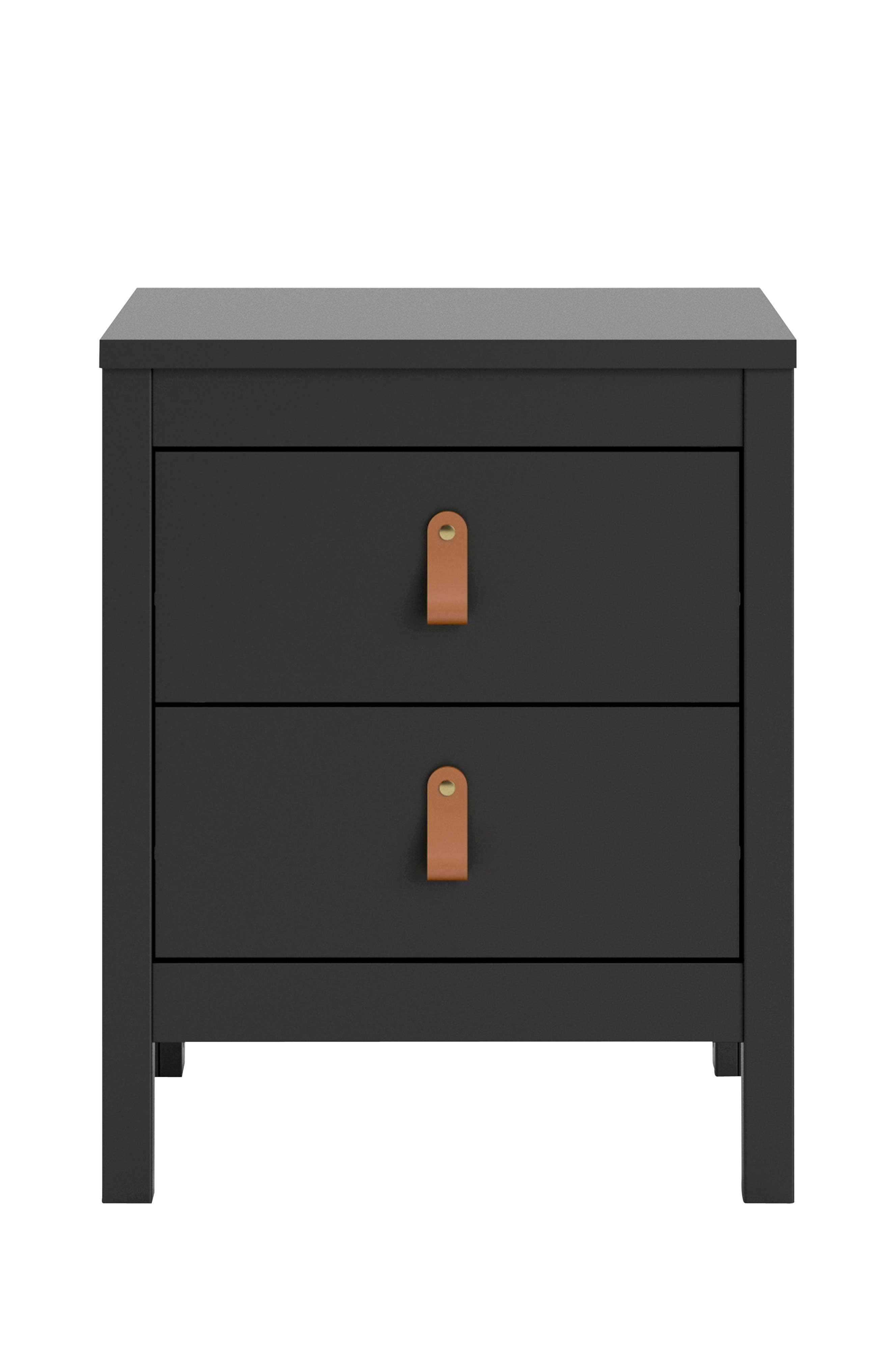 Sängbord i tidlös, enkel design med två lådor från Tvilum, som passar med alla inredningsstilar. Två lådor ger gott om förvaringsutrymme och gör det enkelt att hålla ordning på dina saker. Det står stadigt och lådorna har rullskenor av metall. Sängbordet har en folieyta som inte bleknar och är enkel ett rengöra, och blir ett hållbart inslag i sovrummet eller gästrummet. Tillverkat i Danmark. Sängbordet levereras med två olika slags handtag; en liten, grå metallknopp eller ett brunt läderhandtag - så du kan anpassa stilen efter dina egna önskemål!