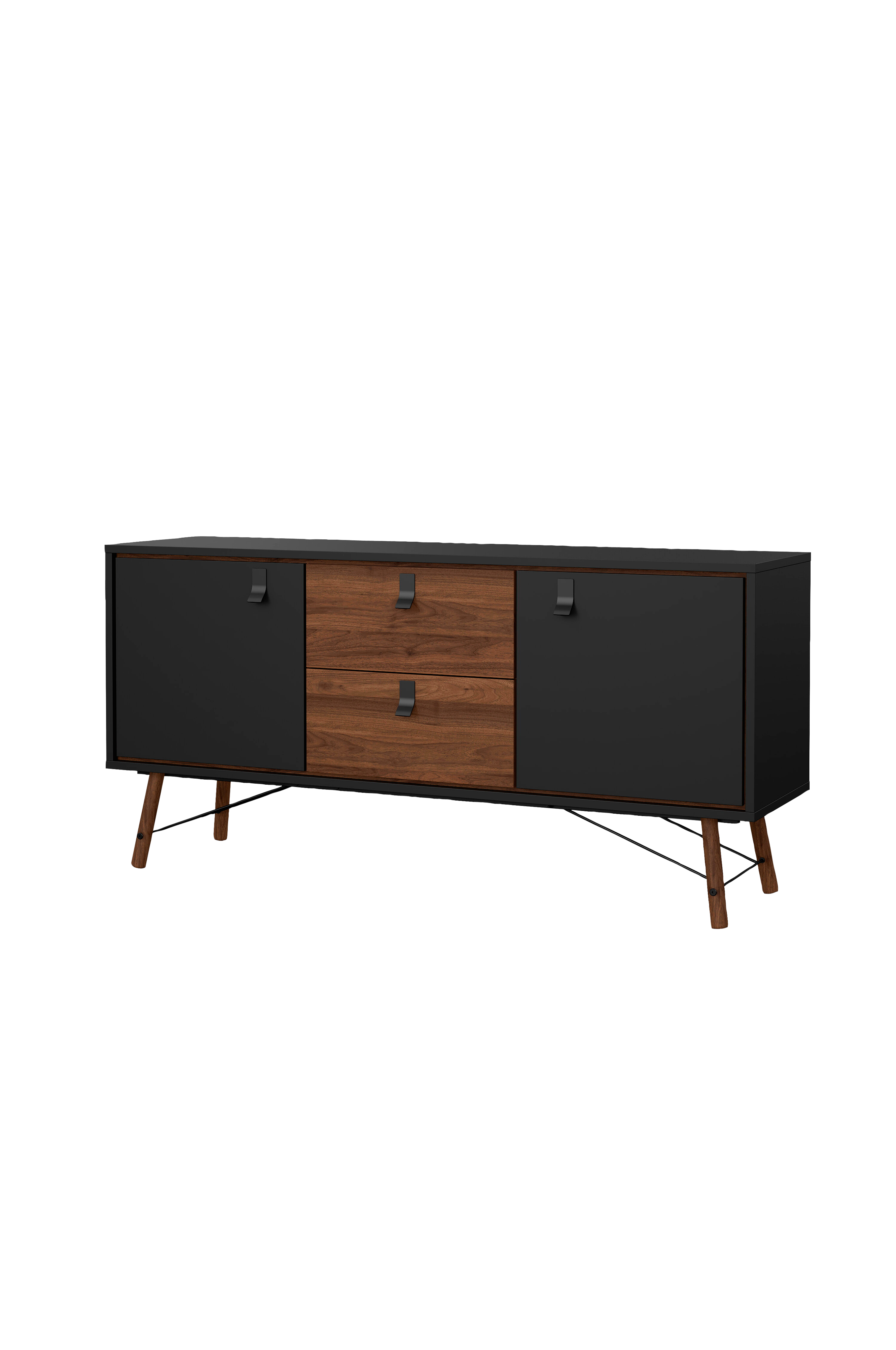 ry -sideboard med två dörrar och två lådor, som perfekt kombinerar design och funktionalitet. Lådorna håller småsakerna ordnade, medan skåpen ger gott om utrymme för större föremål. Anpassa hyllorna för maximal flexibilitet i förvaringen.