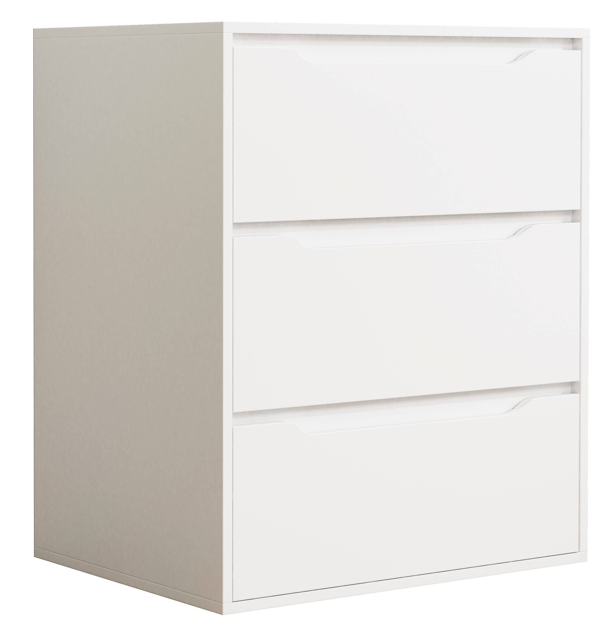 En fantastisk möbel med tre lådor som ger gott om förvaringsutrymme. Handtagen är integrerade i lådfronterna, vilket ger möbeln en elegant design.