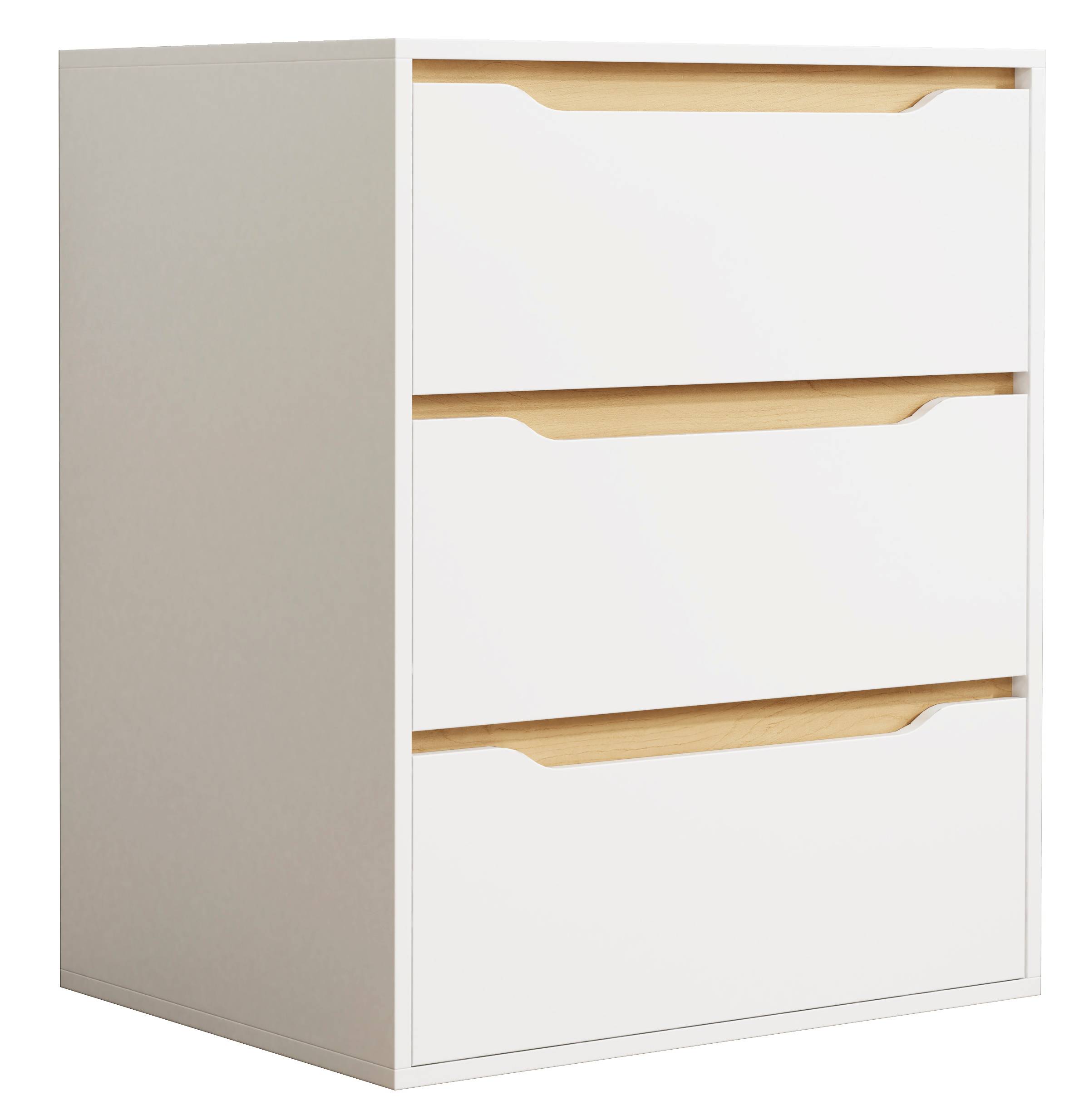 En fantastisk möbel med tre lådor som ger gott om förvaringsutrymme. Handtagen är integrerade i lådfronterna, vilket ger möbeln en elegant design.