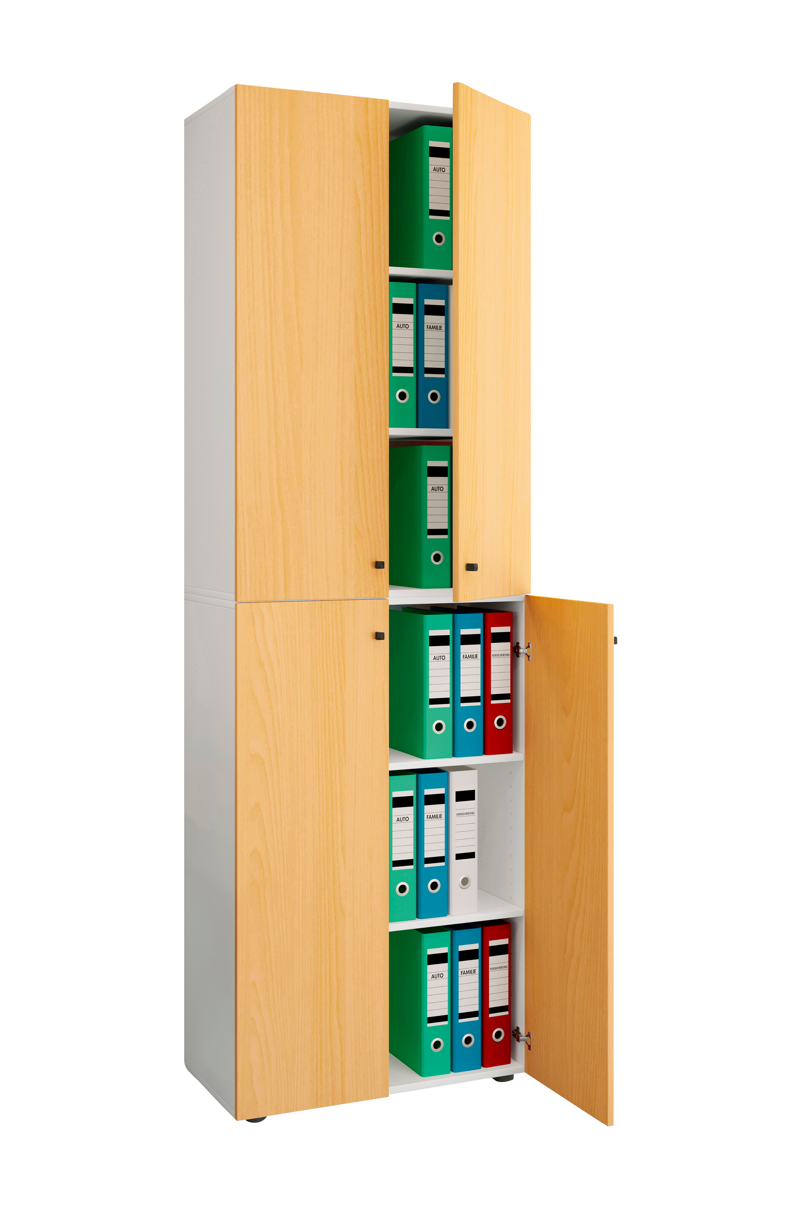 vcm "lona xl hyllskåp med fyra gångjärnsdörrar" har fyra flyttbara hyllplan och plats för ca 42 mappar och andra redskap. Skåpet kan kombineras med andra möbler i serien "vcm lona ".