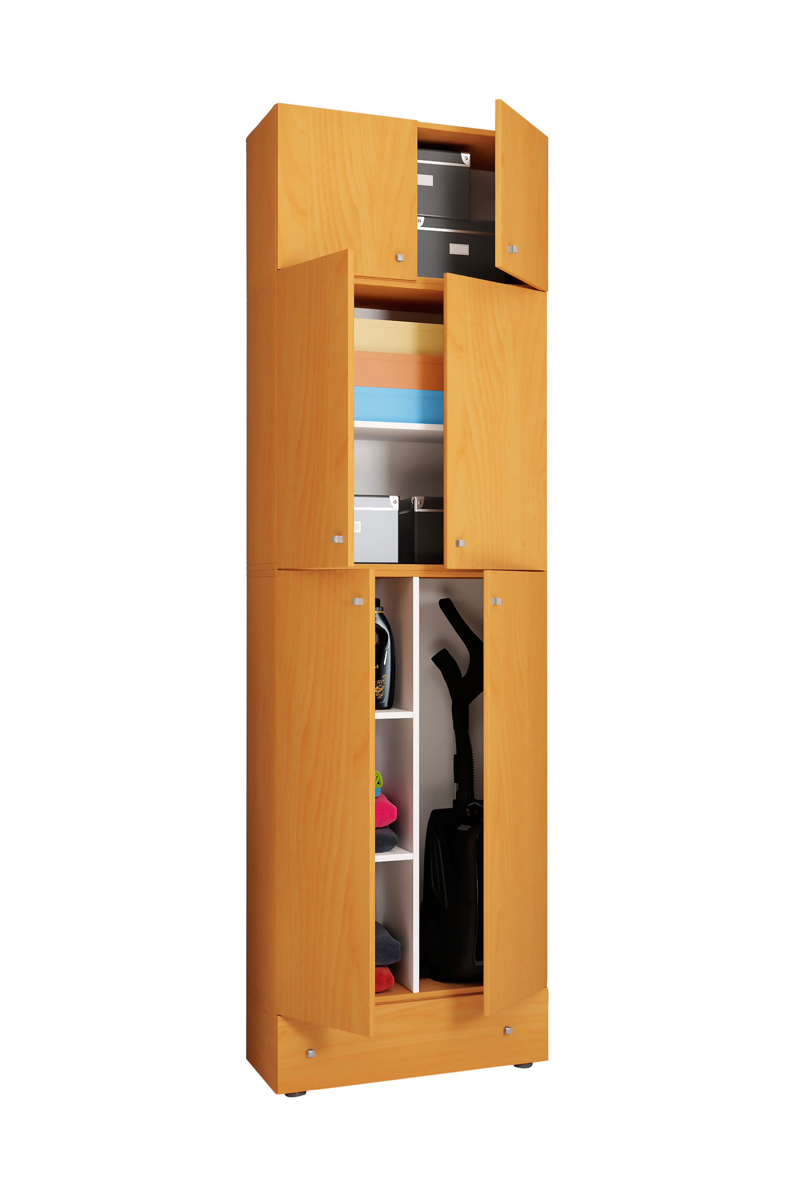 vcm städskåpet "lona xxl " med låda och topp väcker uppmärksamhet inte bara på grund av sin tidlösa design och högkvalitativa utförande. Städskåpet erbjuder också förvaringsutrymme för nästan alla hushållsredskap genom sex extra fack. Även dammsugare eller kvastar hittar sin plats i det extra stora facket.