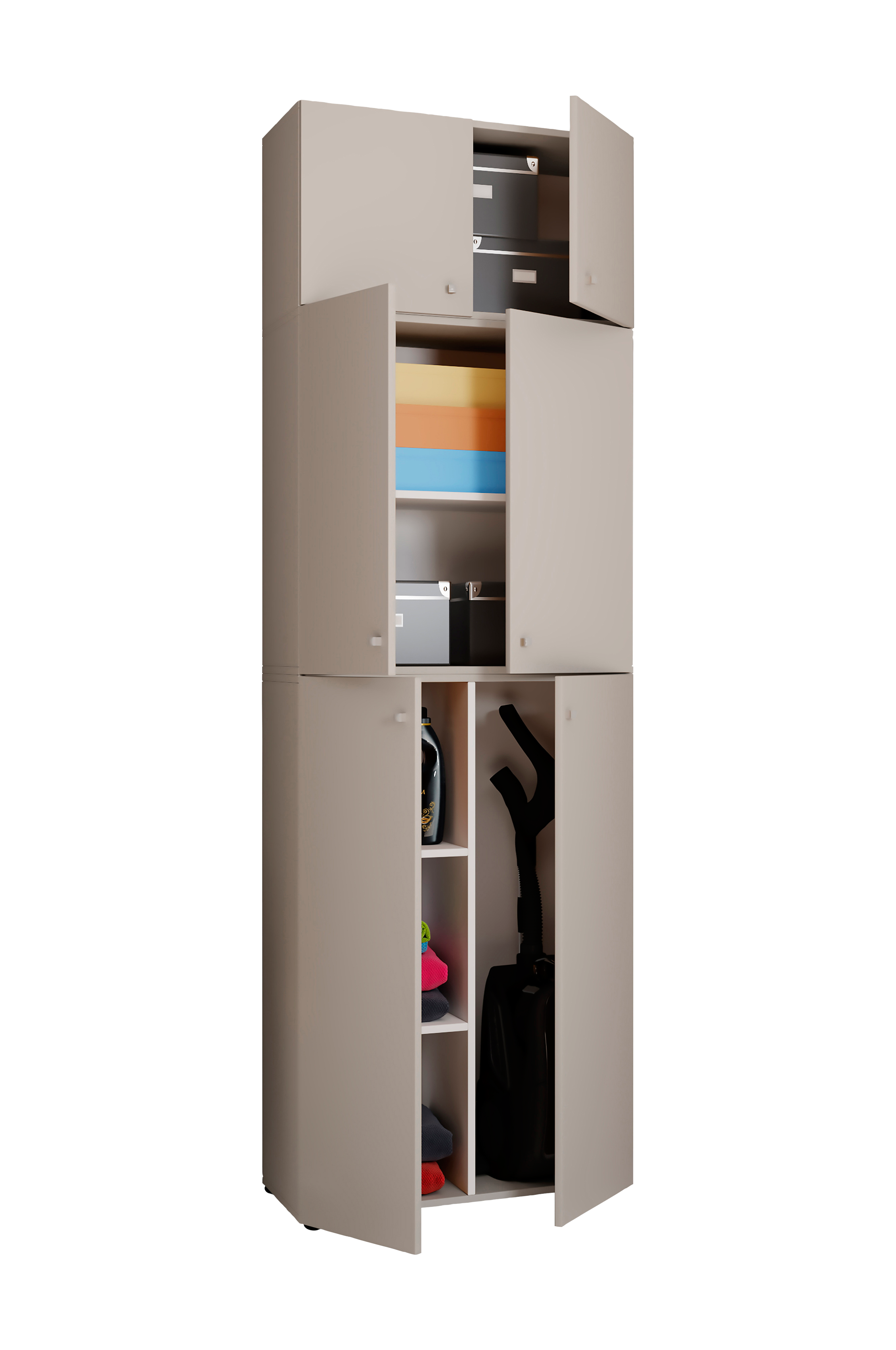 vcm städskåpet "lona xxl " med tillbehör utmärker sig inte bara genom sin tidlösa design och sitt högkvalitativa utförande. Städskåpet erbjuder också förvaringsutrymme för nästan alla hushållsredskap genom sex extra fack. Även dammsugare eller kvastar hittar sin plats i det extra stora facket.