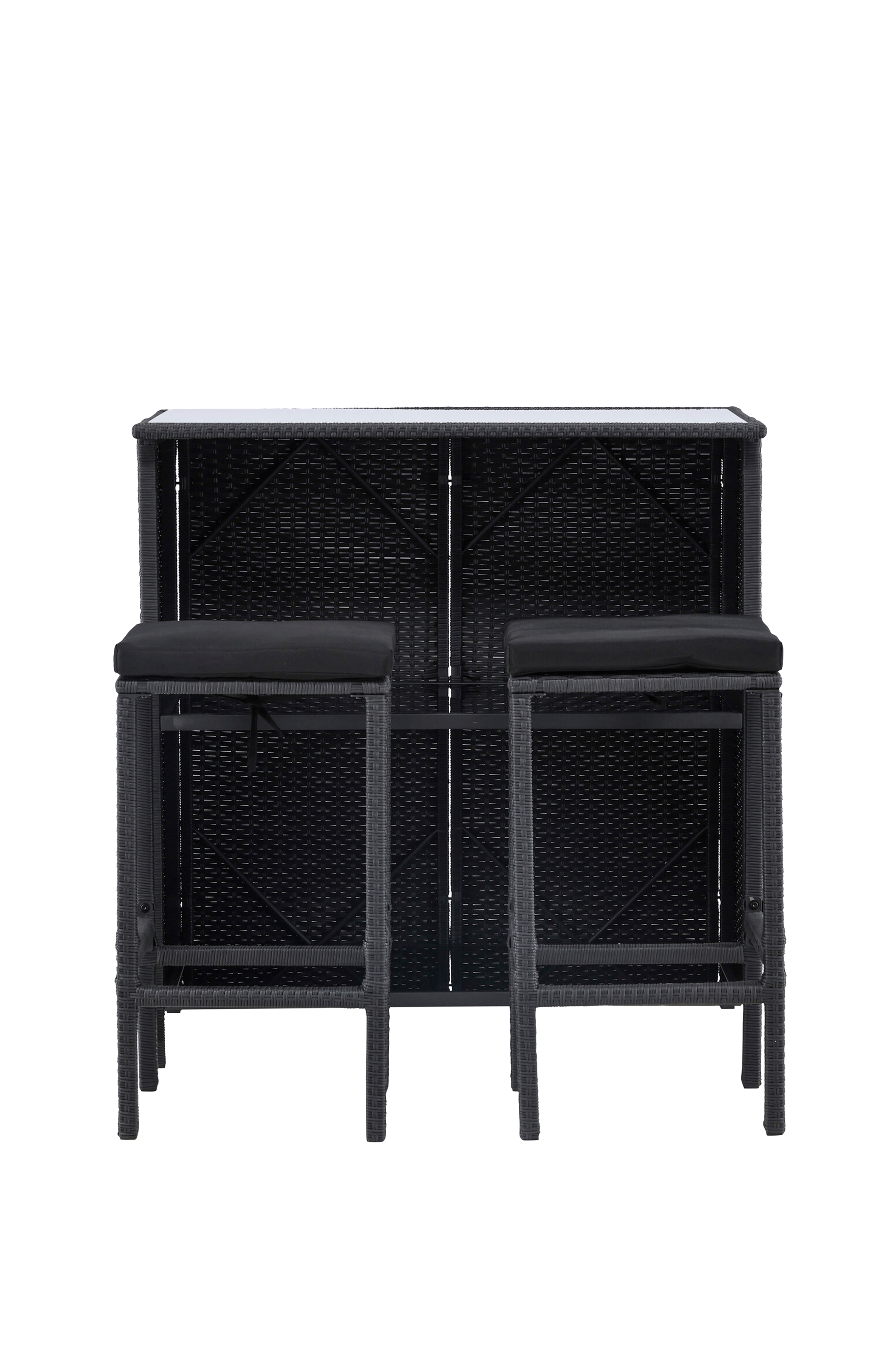stolarna, som är bekvämt utformade i rotting, levereras med en matchande dyna för extra komfort. Varje stund vid detta barset blir en njutning när du sätter dig ner och kopplar av i den eleganta atmosfären. Knock bar set är inte bara en möbelgrupp, det är en inbjudan till avkoppling och social samvaro. Låt detta praktiska och eleganta barset bli en central del av ditt uteliv och njut av varje stund i elegans och komfort.