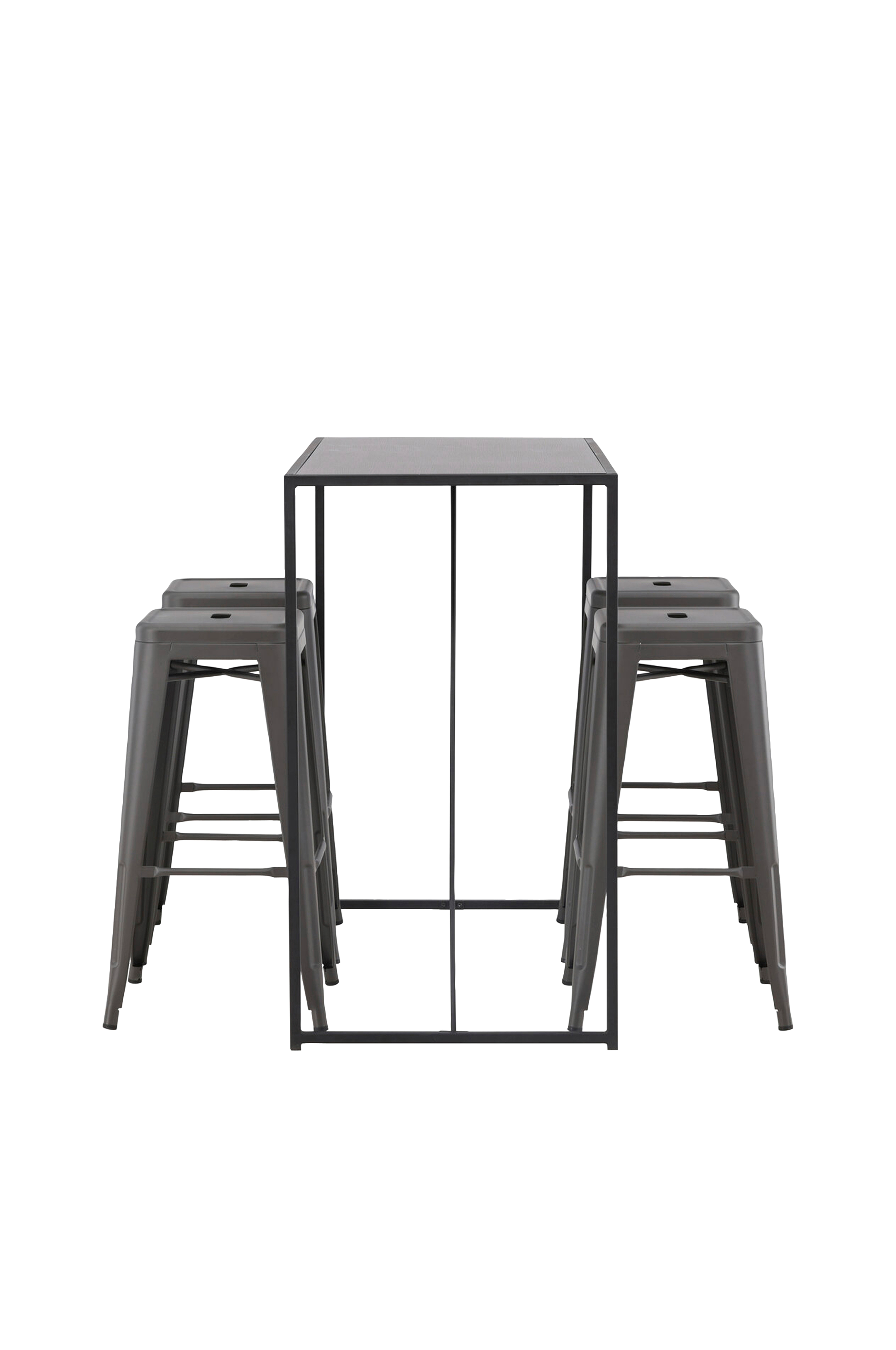 En stilren och trendig bargrupp för fyra! Här är barstolarna tempe kombinerat med barbordet brea som ger ett modernt och industriellt uttryck. Barstolen har en klassisk design av en högre pall med lätt utsvängda ben och sits i stål och en ram för fotstöd. Barbordet har en skandinavisk och minimalistisk design med en bordsskiva i tunn mdf med en smal ramkonstruktion i stål. Den här bargruppen är perfekt för dig som föredrar högre sittplatser i köket eller för dig med öppen planlösning som önskar sittande sällskap när du lagar mat.