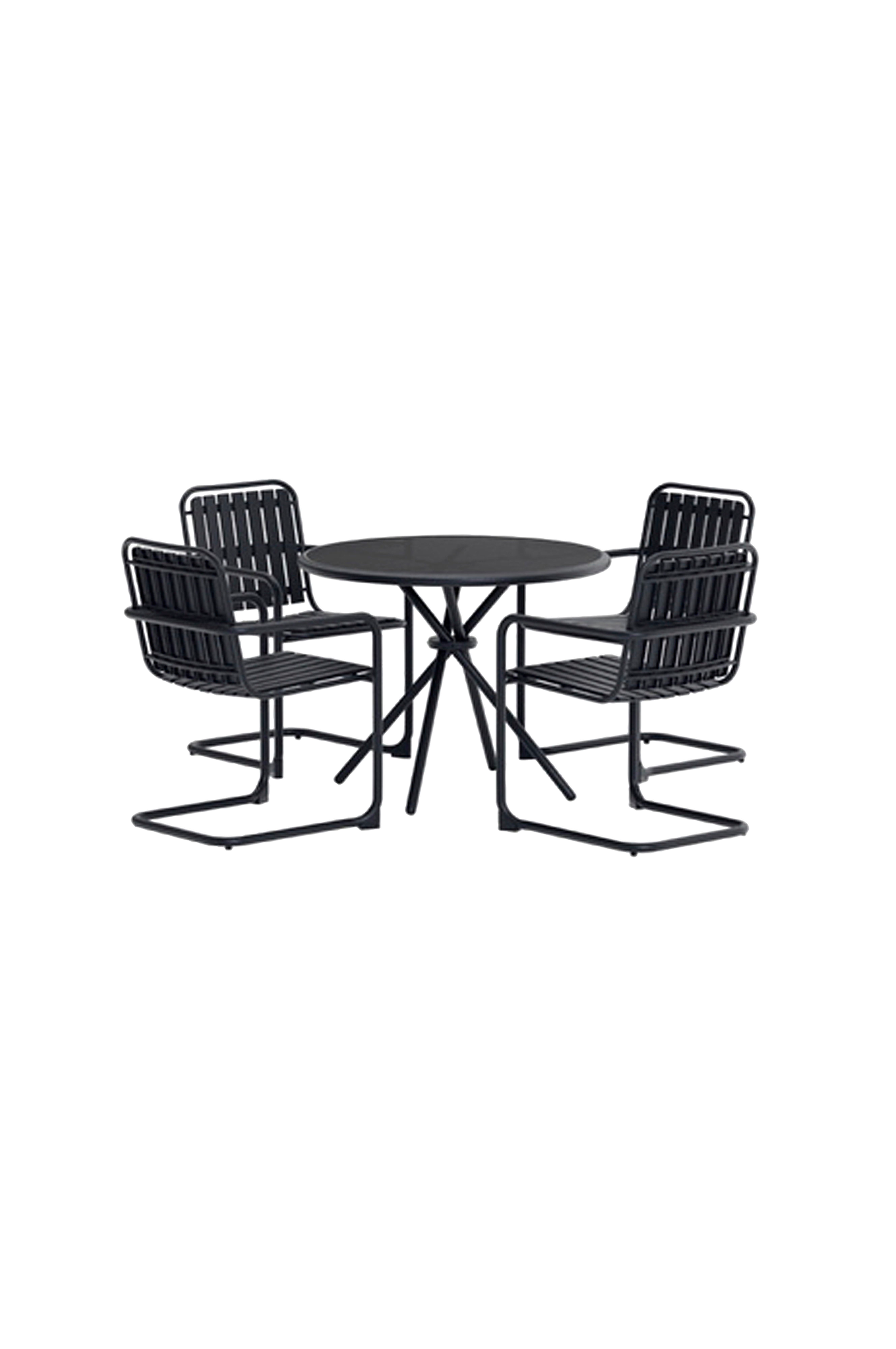 Chios-matsetet är en modern och inbjudande lösning för uteplatsen eller balkongen. Setet innehåller ett 90 cm runt bord och fyra stolar med en elegant vävd design och bekväma former som gör att du vill sitta i timmar. Den eleganta färgen ger en sofistikerad touch och gör det enkelt att kombinera med andra utemöbler. Med matgruppen chios får du både funktion och design i ett - perfekt för allt från soliga frukostar till middagar med vänner. Stol: 59x51,5x83 bord: 90x71