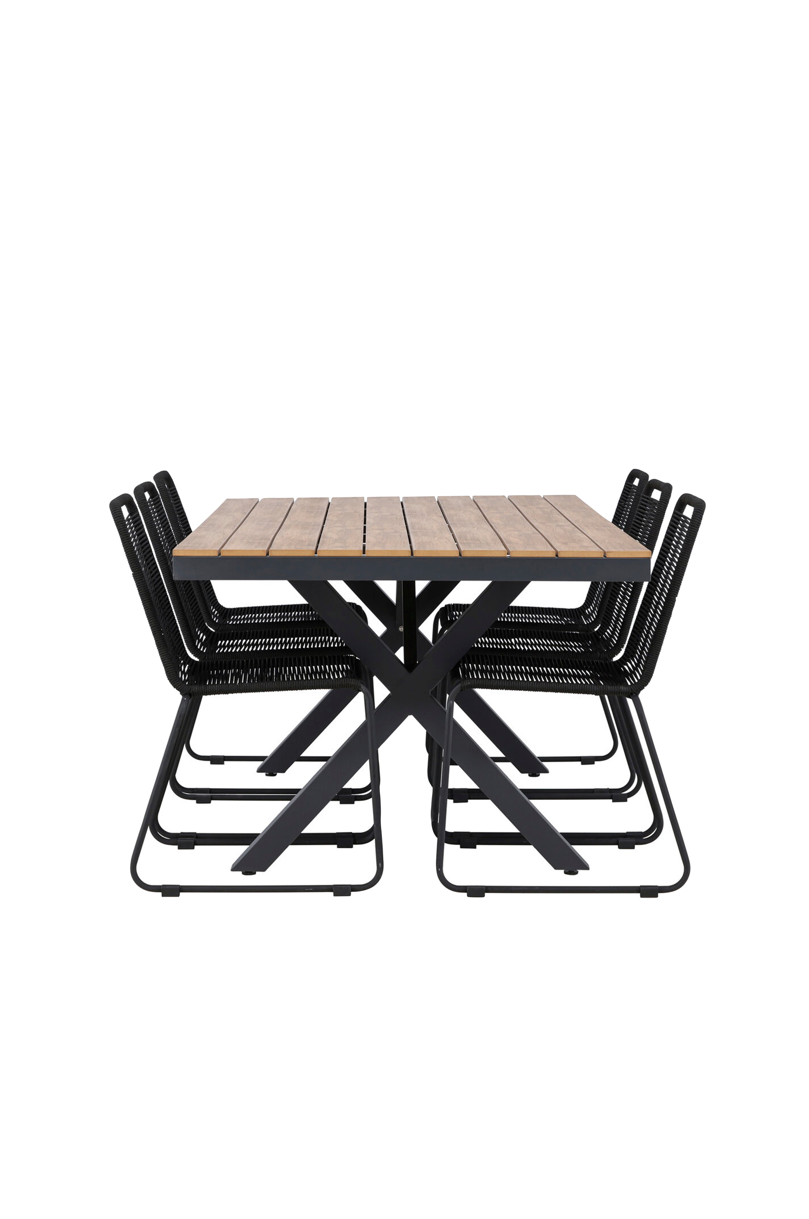 lindos Stolarna är tillverkade med omsorg och design i åtanke. Med sitsar i polypropylen och ben i stål erbjuder de både komfort och stil. Denna kombination ger en modern touch med en varm och inbjudande känsla. Garcia bordet fungerar som mittpunkten i denna matgrupp med sina imponerande mått på 200x74 cm. Bordsskivan i fanér och underredet i aluminium ger en genomtänkt och elegant look som är perfekt för sammankomster med nära och kära utomhus.