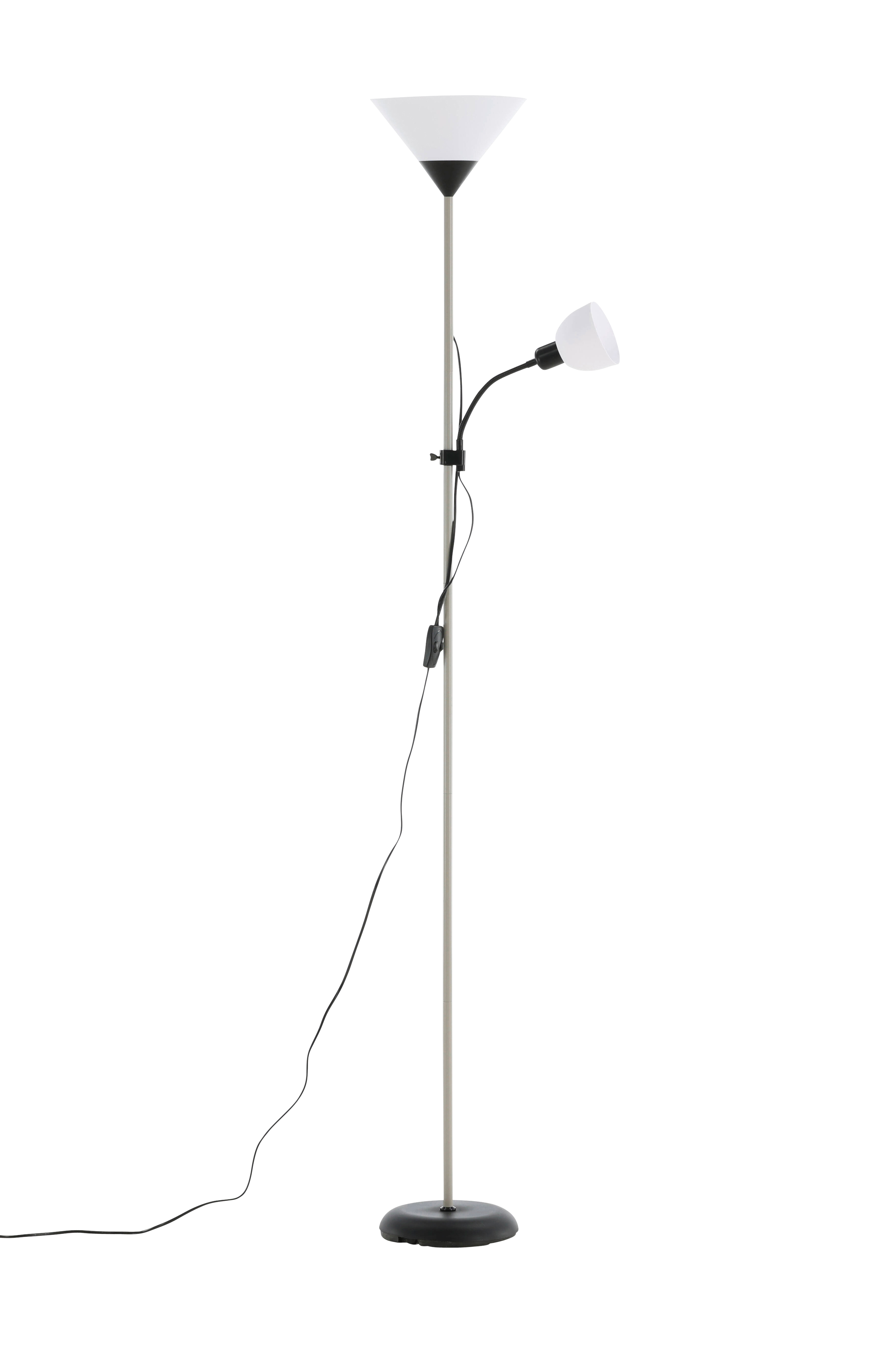 Bagasi golvlampa i metall och plast med två ljuskällor. Enklare montering krävs. Ljuskälla ingår ej.