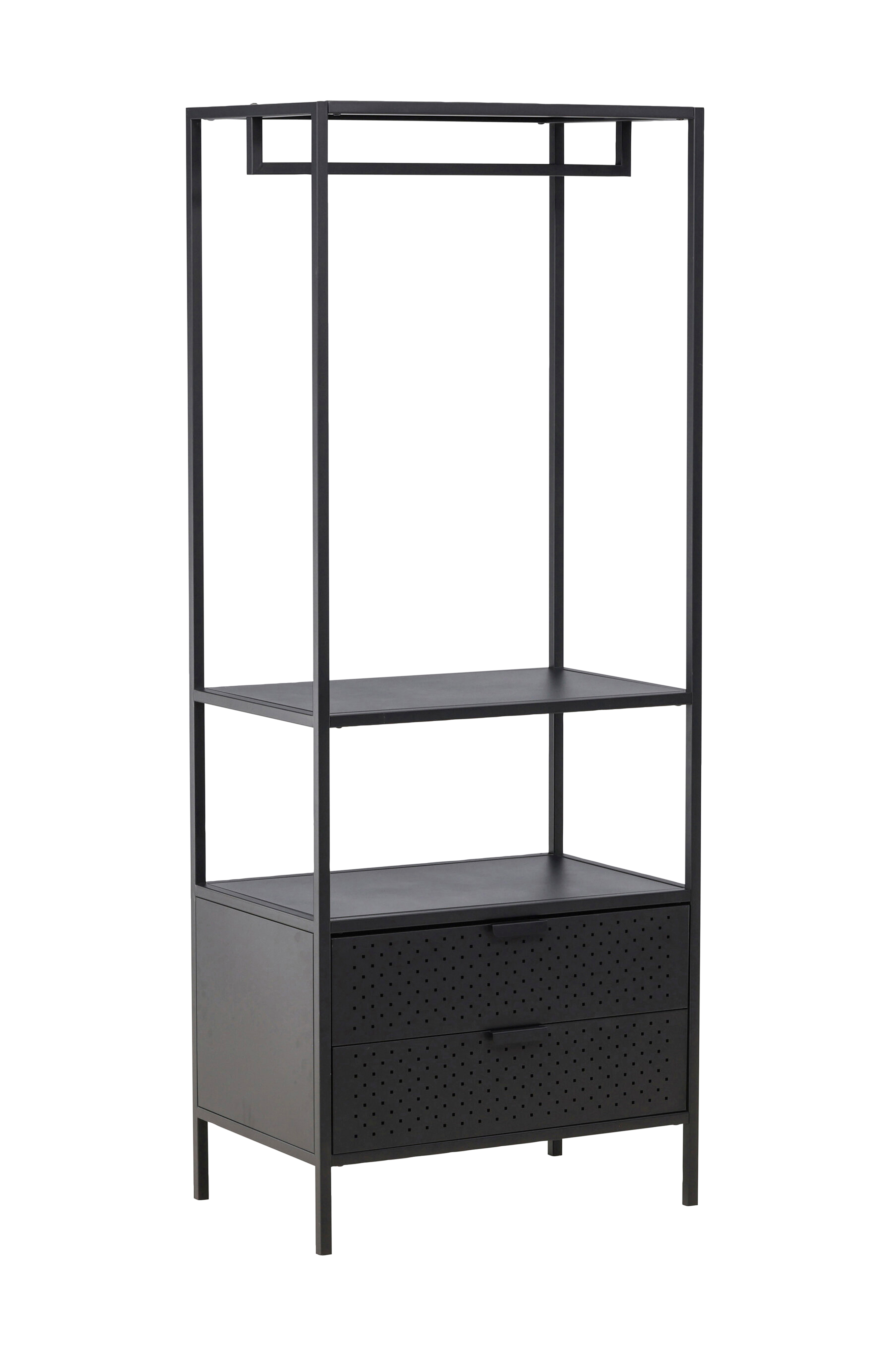 Skapa ordning och stil med malibu - klädhängaren i nordisk design! Med sin moderna skandinaviska design skapar den en känsla av minimalistisk elegans i ditt hem. Men framför allt erbjuder den här klädhängaren så mycket mer än bara en plats att hänga dina kläder. Lägg märke till hur stressen smälter bort när du ser din vardag organiserad och i perfekt ordning. Här kan du njuta av fördelen med dold förvaring med två rymliga lådor i botten. Det finns också ett lågt hyllplan som är som skräddarsytt för dina skor och vikta jeans. Genomgående tillverkat i stål. Enkelt och tillgängligt - precis som det ska vara. Ta ett djupt andetag och känn hur de små sakerna kan göra en stor skillnad i din morgonrutin.