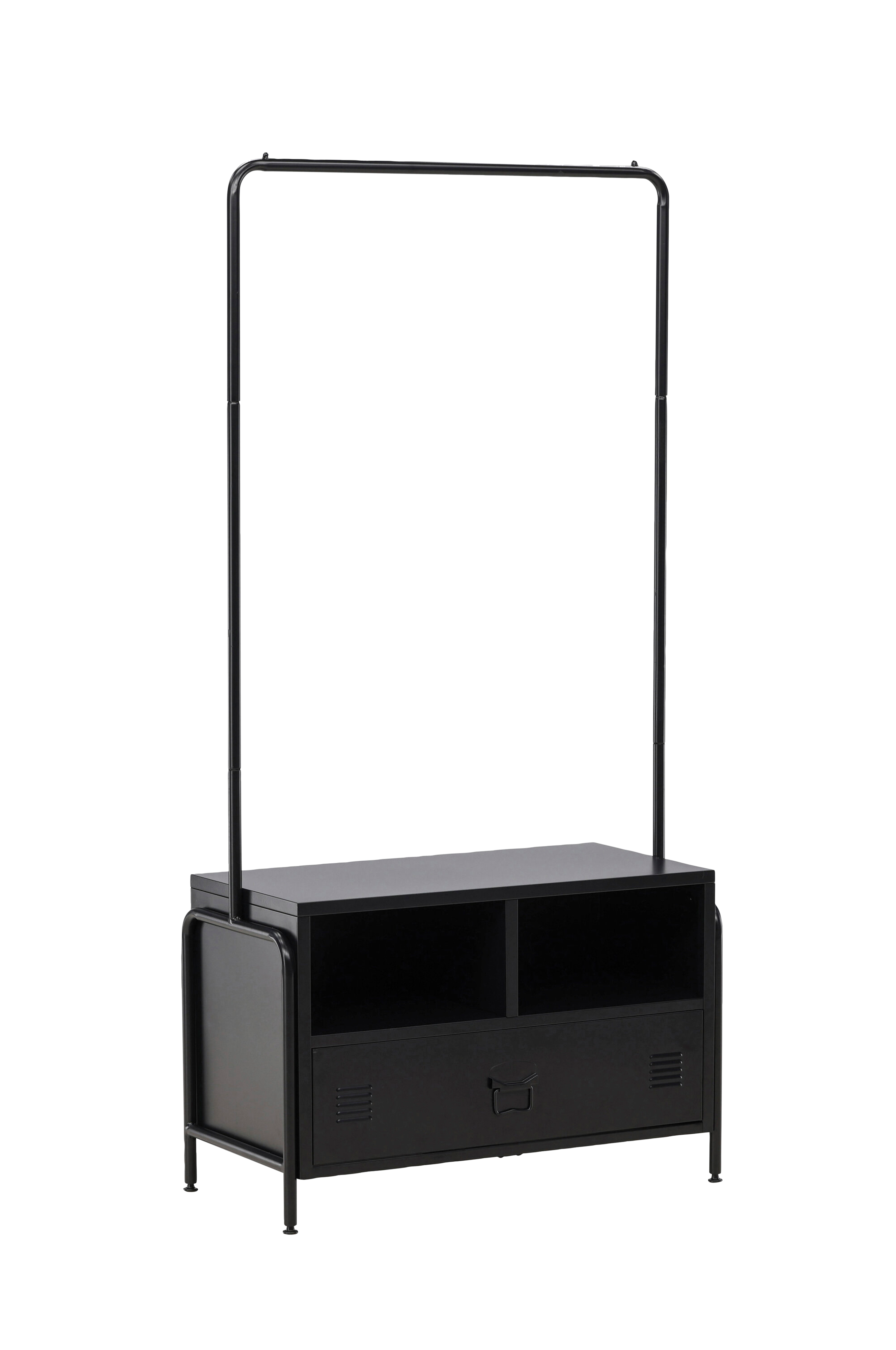 Skapa ordning och reda i garderoben med stil! Klädhängaren från serien quito är det perfekta komplementet till dina kläder och skor. Här får du en underbar förvaringslösning som går att placera var som helst. Quito är stilrent designad med de skandinaviska trenderna i åtanke. Tillverkad med precision i stål, tar quito klädhängare minimalism till en ny nivå. Den bågformade designen lyfter inte bara fram dina kläder, utan ger också ett elegant uttryck till ditt utrymme. Den är även utformad med smart förvaringsplats. Med en innovativ låda i botten kan du vika ner det du önskar förvara dolt. Ovanpå lådan finns två öppna fack som ger dig möjlighet att visa upp dina favoritskor eller snyggt hopvikta jeans. Allt inom räckhåll för att göra ditt liv enklare och mer organiserat. quito är helt enkelt ett perfekt tillskott till din garderob. Den utstrålar en känsla av sofistikation och ordning som kompletterar din personliga stil på ett enastående sätt!