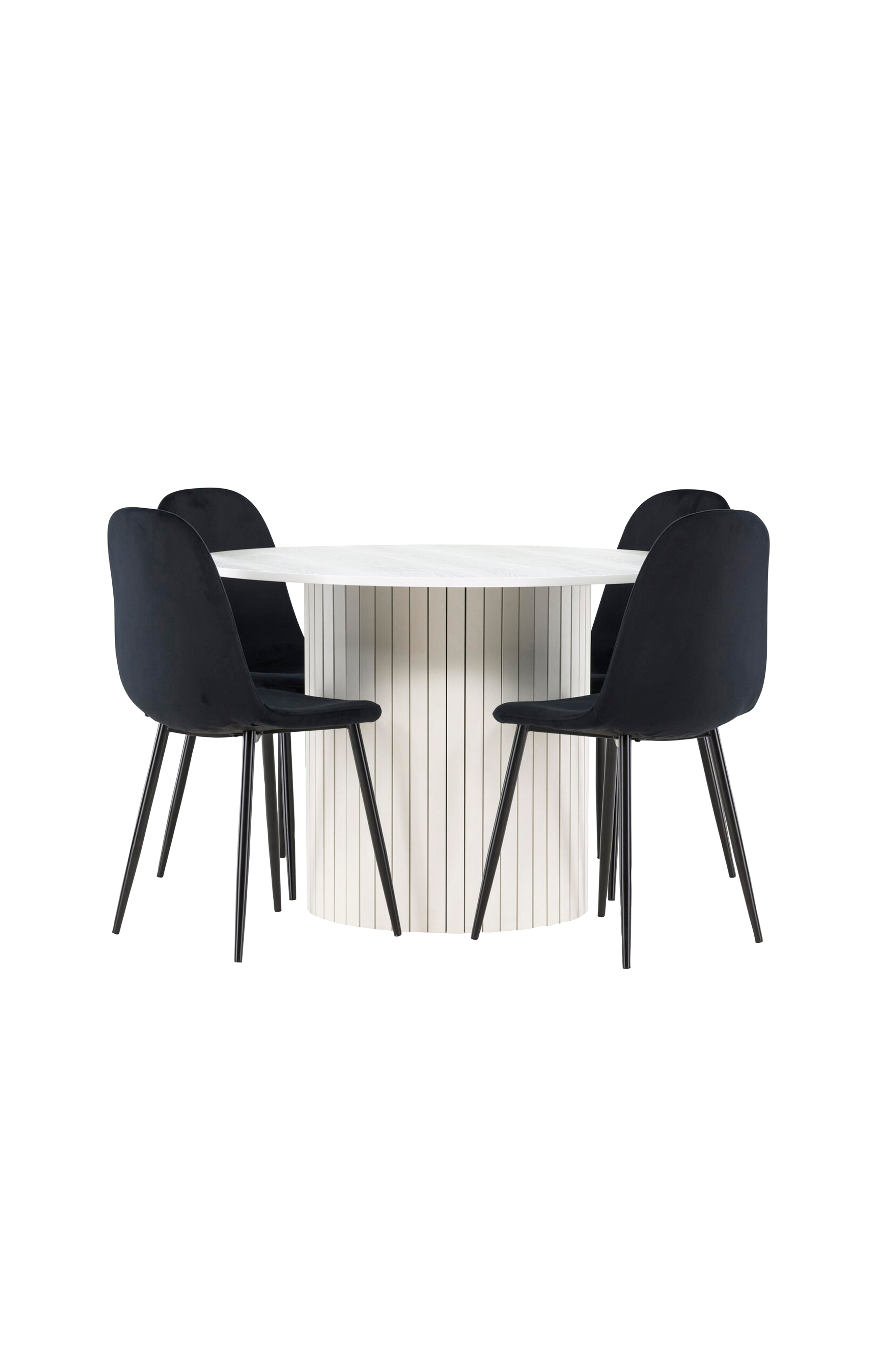 Skapa en elegant och inbjudande matplats med vår sofistikerade matgrupp som kombinerar det moderna Häron-bordet med de lyxiga Polar-stolarna. Denna matgrupp är perfekt för både vardagliga middagar och festliga tillfällen och ger din matsal en modern och sofistikerad känsla. Häron-bordet, som är tillverkat av mdf, har en finish som ger en ljus och fräsch atmosfär till din matsal. Med en diameter på 110 cm erbjuder bordet gott om utrymme för mat och samtal, samtidigt som dess runda form skapar en harmonisk och inbjudande miljö. Bordets robusta konstruktion garanterar långvarig användning och stabilitet. De fyra polarstolarna kompletterar bordet perfekt med sina eleganta sitsar. Dessa stolar erbjuder både komfort och stil, vilket gör dem idealiska för långa, trevliga middagar med familj och vänner. Deras moderna design med höga ryggstöd och mjuka sitsar ger din matsal en sofistikerad och modern touch. Denna matgrupp är en perfekt blandning av estetik och funktionalitet, vilket gör den till ett utmärkt val för dig som vill ha en elegant och bekväm matplats. Uppgradera din matsal med en kombination av Häron-bordet och Polar-stolarna och skapa en plats där minnen och glädje delas.