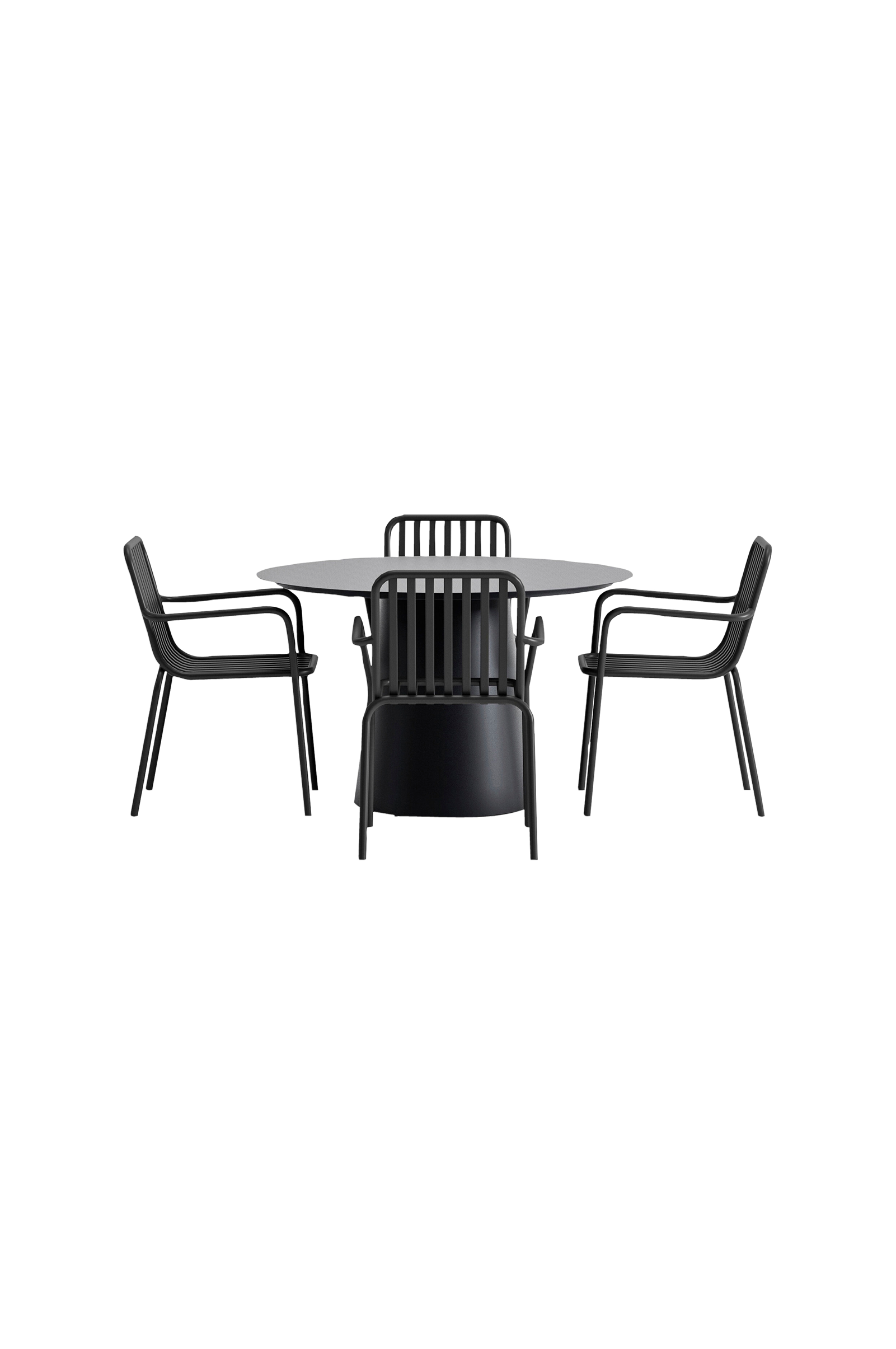 Skapa en modern och elegant uteservering med denna eleganta kombination av peking-möbelstolar och det exklusiva runda lanzo-möbelbordet. Peking-matstolen har en lamelldesign och en röksvart färg som ger ett tidlöst och modernt uttryck. Den är tillverkad av lättviktsaluminium och har integrerade armstöd för extra komfort. Stolen är också stapelbar, vilket gör den lätt att flytta och praktisk att förvara. Matbordet lanzo är ett runt bord med en diameter på 120 cm som skapar en naturlig och social samlingspunkt. Den snygga designen med ett konformat underrede ger bordet en exklusiv känsla, och den robusta aluminiumkonstruktionen gör det både stabilt och lättmatchat i olika utomhusmiljöer.