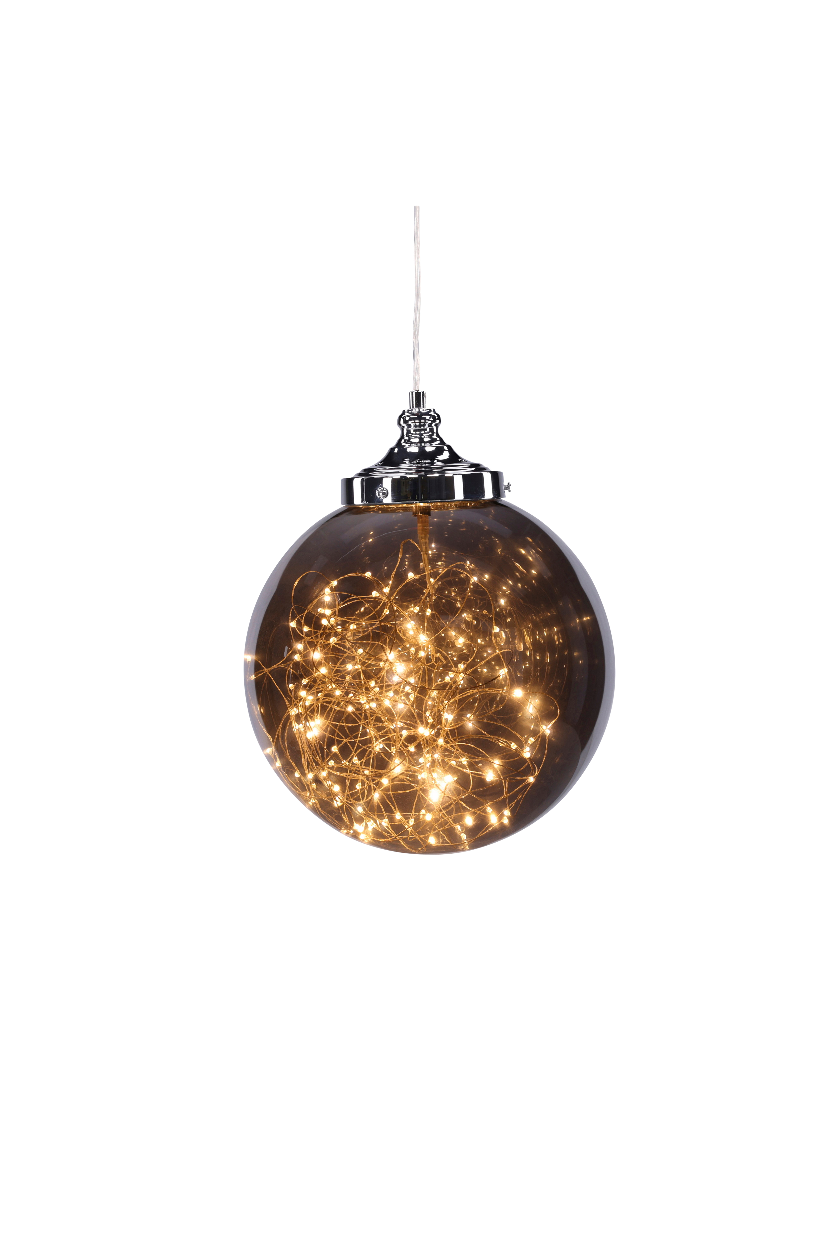 Lemans är en taklampa imponerar med sin unika ljuskälla och vackra utformning! Lampan består utav ett enkelt tt fäste i järn och en vacker kupa i rökfärgat glas som låter ljuskällan, som består utav en led ljusslinga, lysa igenom. Med den här lampan skapar du en mysig och hemtrevlig känsla och passar perfekt som fönsterlampa. Den nätta storleken ger möjligheten att kombinera flera lampor i olika höjd för ett lyxigare intryck.