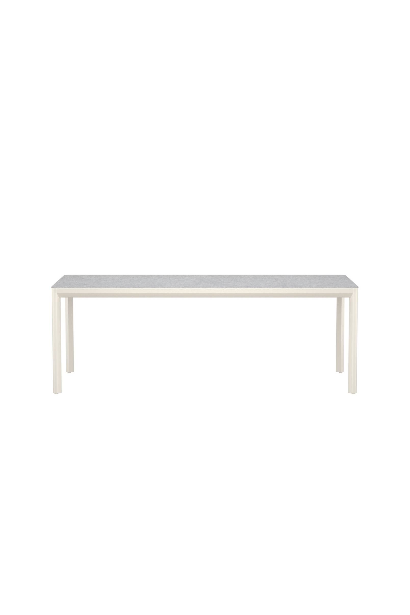 Skapa en snygg och funktionell matplats utomhus med matbordet lino. Bordets minimalistiska design med rena linjer och en beige aluminiumram ger det ett modernt utseende som passar perfekt på terrassen, uteplatsen eller i trädgården.