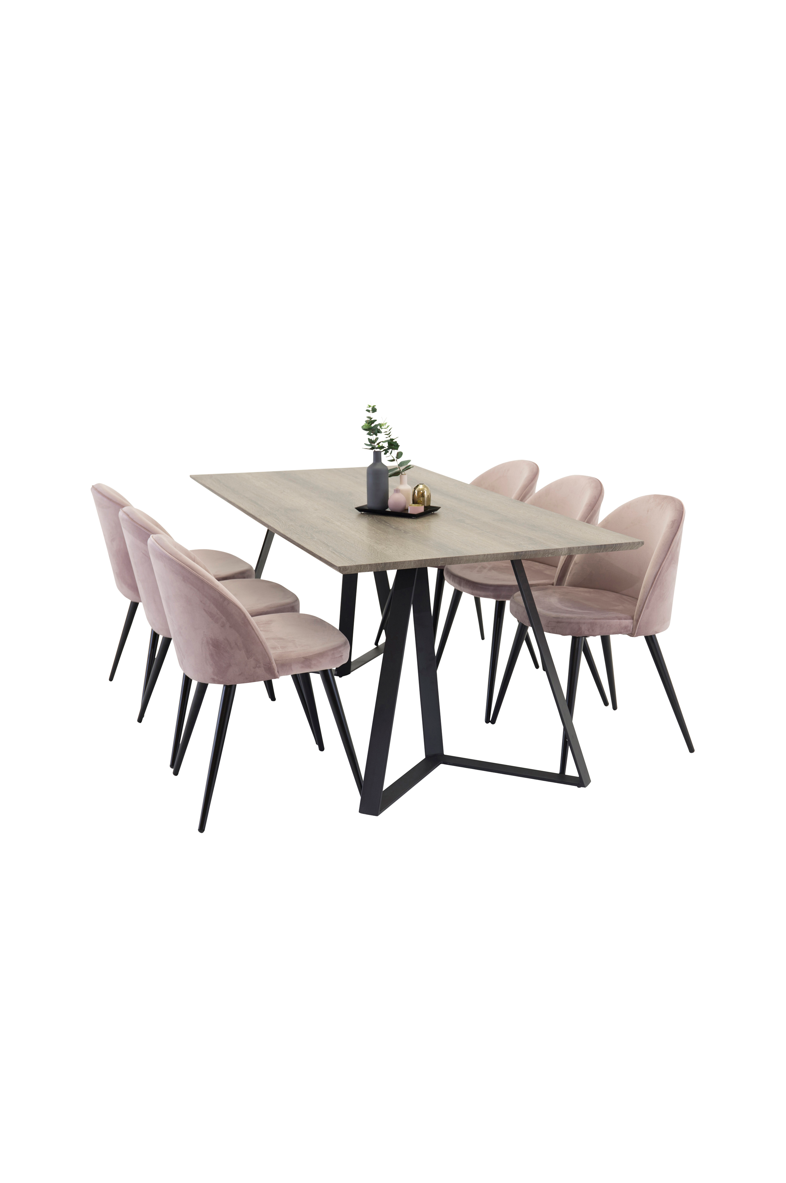 Matgrupp med ett Maggie Matbord i trä samt sex stycken Velvet Matstolar.