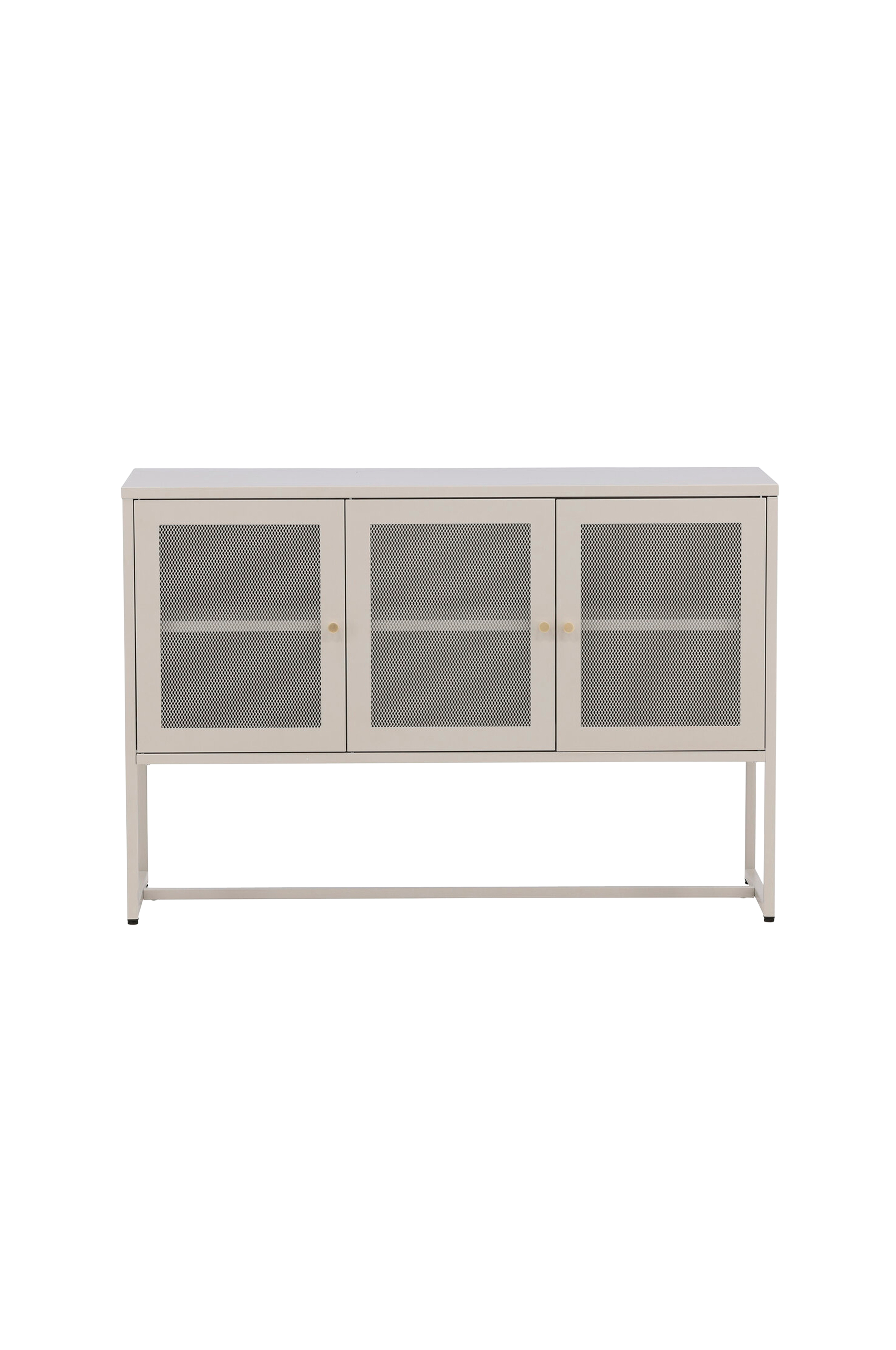 Malla - ett modernt skåp i tuff industridesign med läckra nätdörrar och ben i beige pulverlackerat stål med 2 smarta hyllplan för avlastning. Skåpet lyfts upp av smala, höga ben som skapar en luftig känsla och även underlättar för dammsugaren. Den perfekta förvaringsmöbeln för allt du vill ha - fyll med porslin, böcker eller vackra dekorationer. Skåpets flexibla storlek och eleganta utsida gör det lättplacerat och passar bra in i de flesta rum i hemmet, så möblera efter dina egna behov och önskemål!