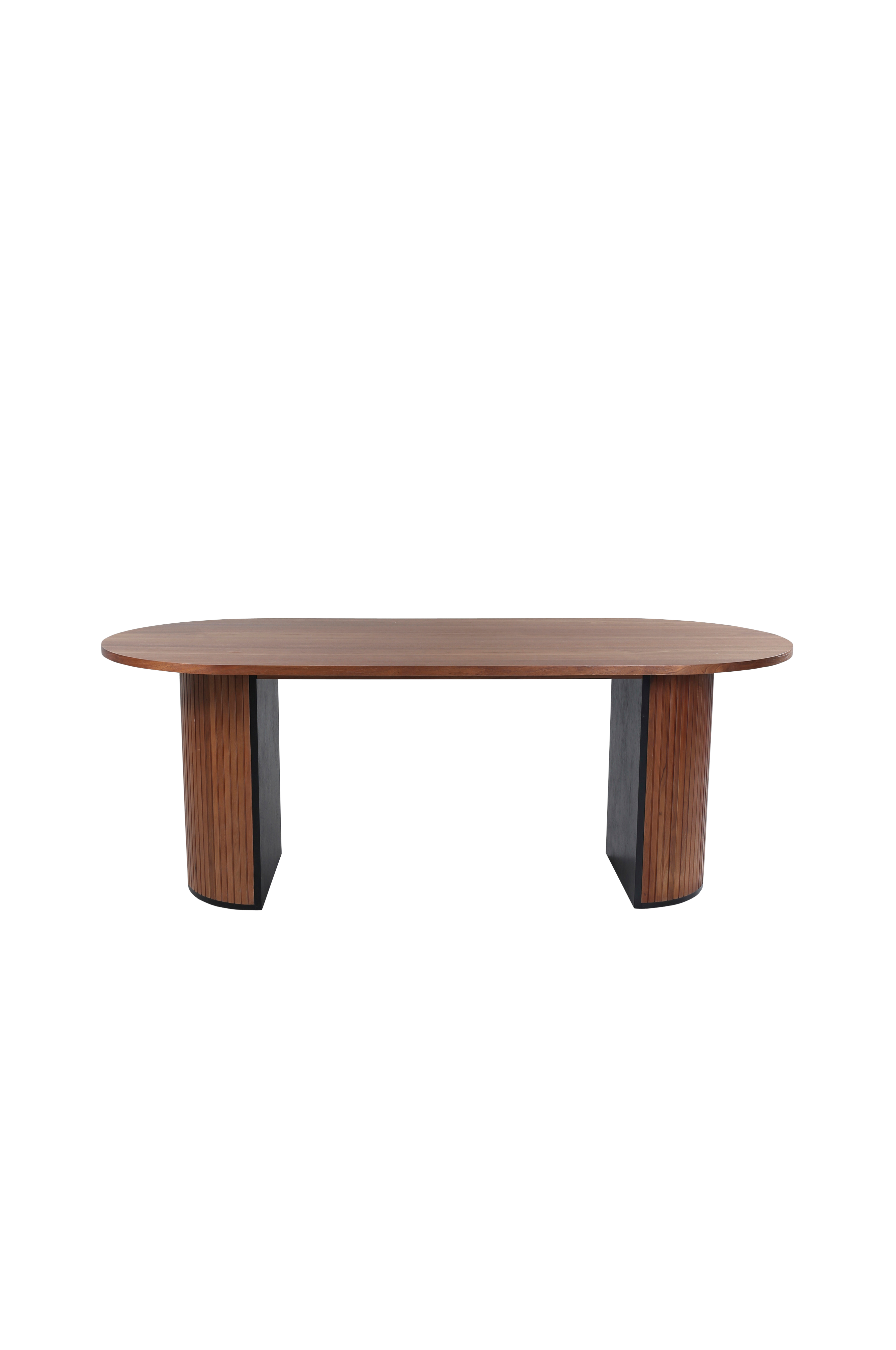 Matbord Bianca, ett ovalt matbord med bordsskiva i MDF och bordsben i ek. Bordets mått: Längd: 200 cm, höjd: 75 cm, bredd: 90 cm. Bordet kräver enklare montering.