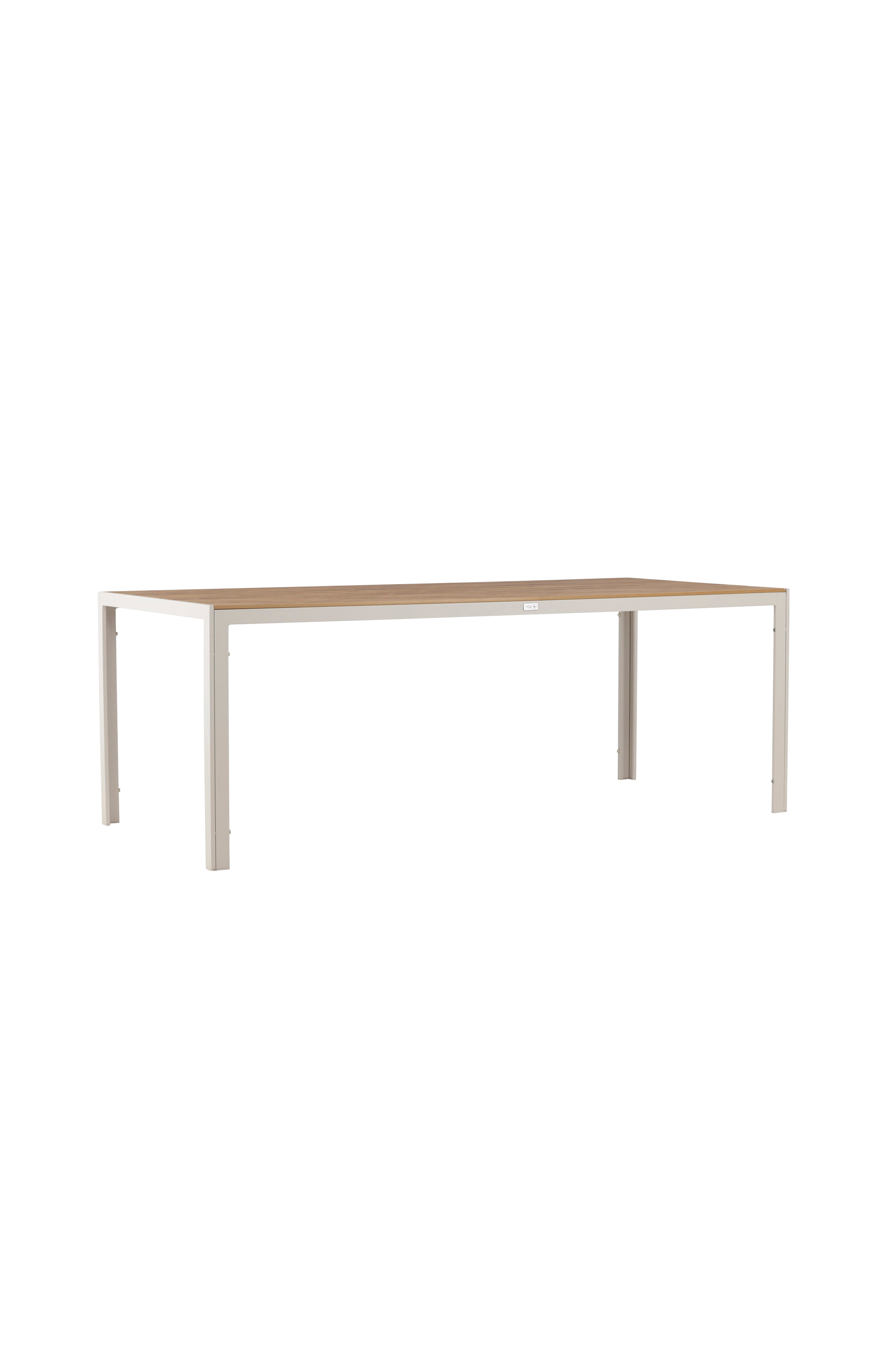 Upptäck break utomhusbordet - det perfekta valet för din utomhusmatupplevelse! Oavsett om du har en terrass, trädgård eller uteplats, kommer detta bord att vara en imponerande och funktionell tillskott till din utomhusmiljö. Break bordet är stilfullt i sin färg, vilket ger en fräsch och modern känsla till din utomhusinredning. Den neutrala nyansen gör det enkelt att matcha bordet med olika stolar och kuddar för att skapa din egen unika stil. Bordsskivan har en elegant teaklook som ger en naturlig och varm känsla. Trots sin estetiska charm är bordet också slitstarkt och lätt att underhålla. Break utomhusbordet kombinerar stil, funktionalitet och hållbarhet för att skapa en optimal matupplevelse utomhus. Oavsett om du planerar en avkopplande familjemiddag eller en festlig grillfest, kommer detta bord att vara den perfekta platsen att samlas vid.