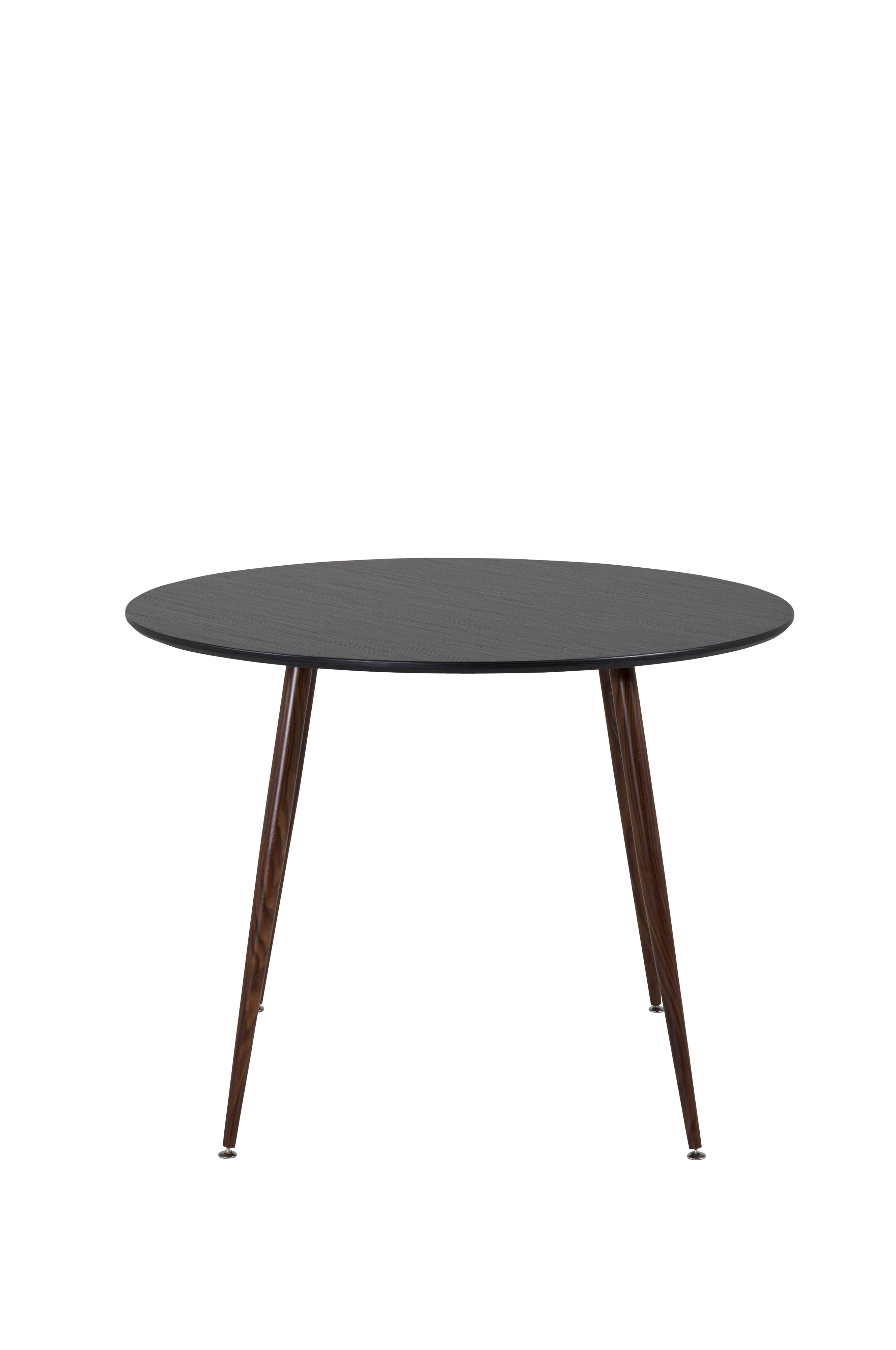 Pia matbord med en rund toppskiva i MDF och bordsben i metall. Bordet kräver enklare montering.