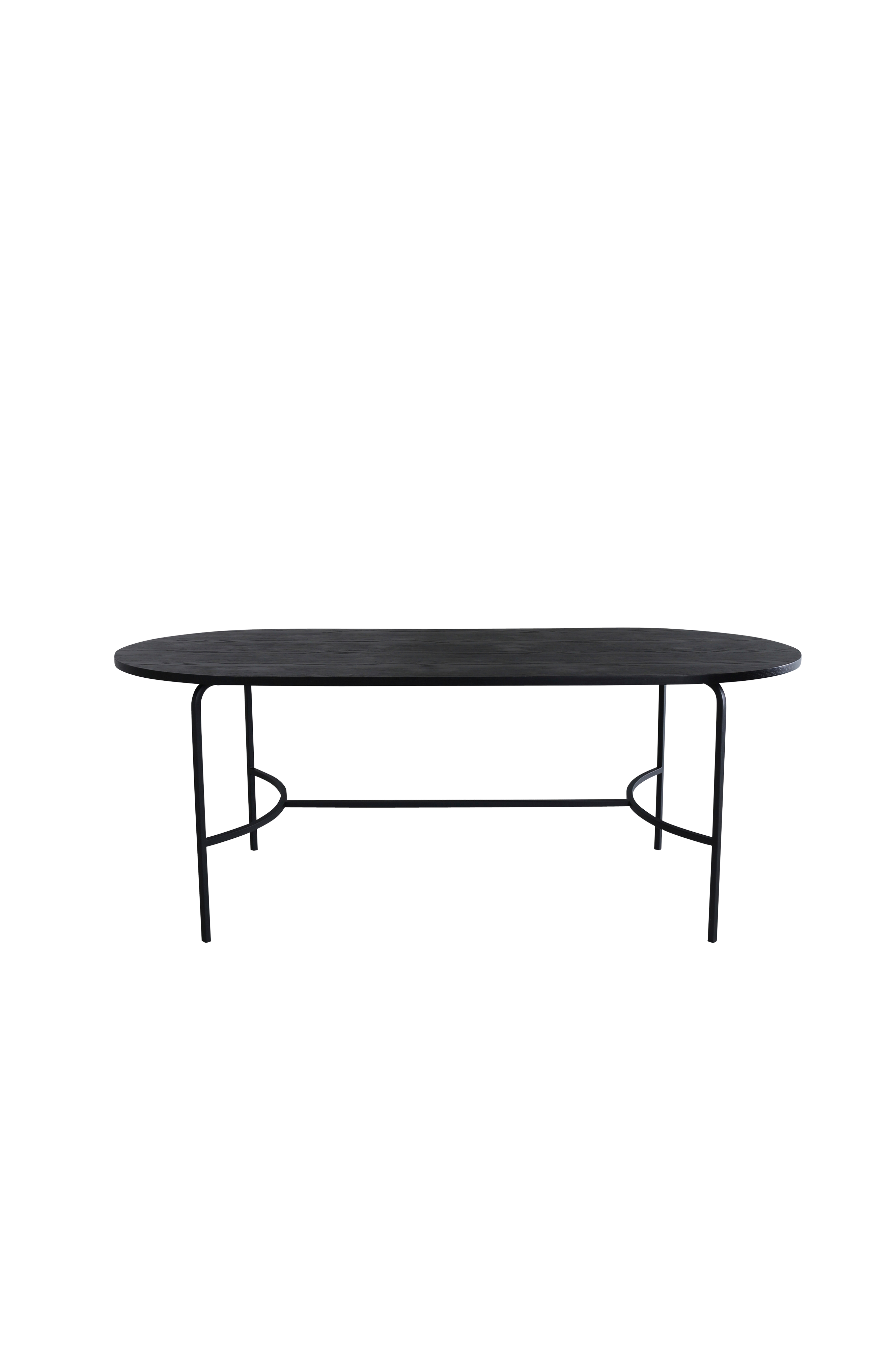 Matbord Skate, ett ovalt matbord med bordsskiva i MDF och bordsben i metall. Bordets mått: Längd: 200cm, Bredd: 90cm, Höjd:75cm. Bordet kräver enklare montering.