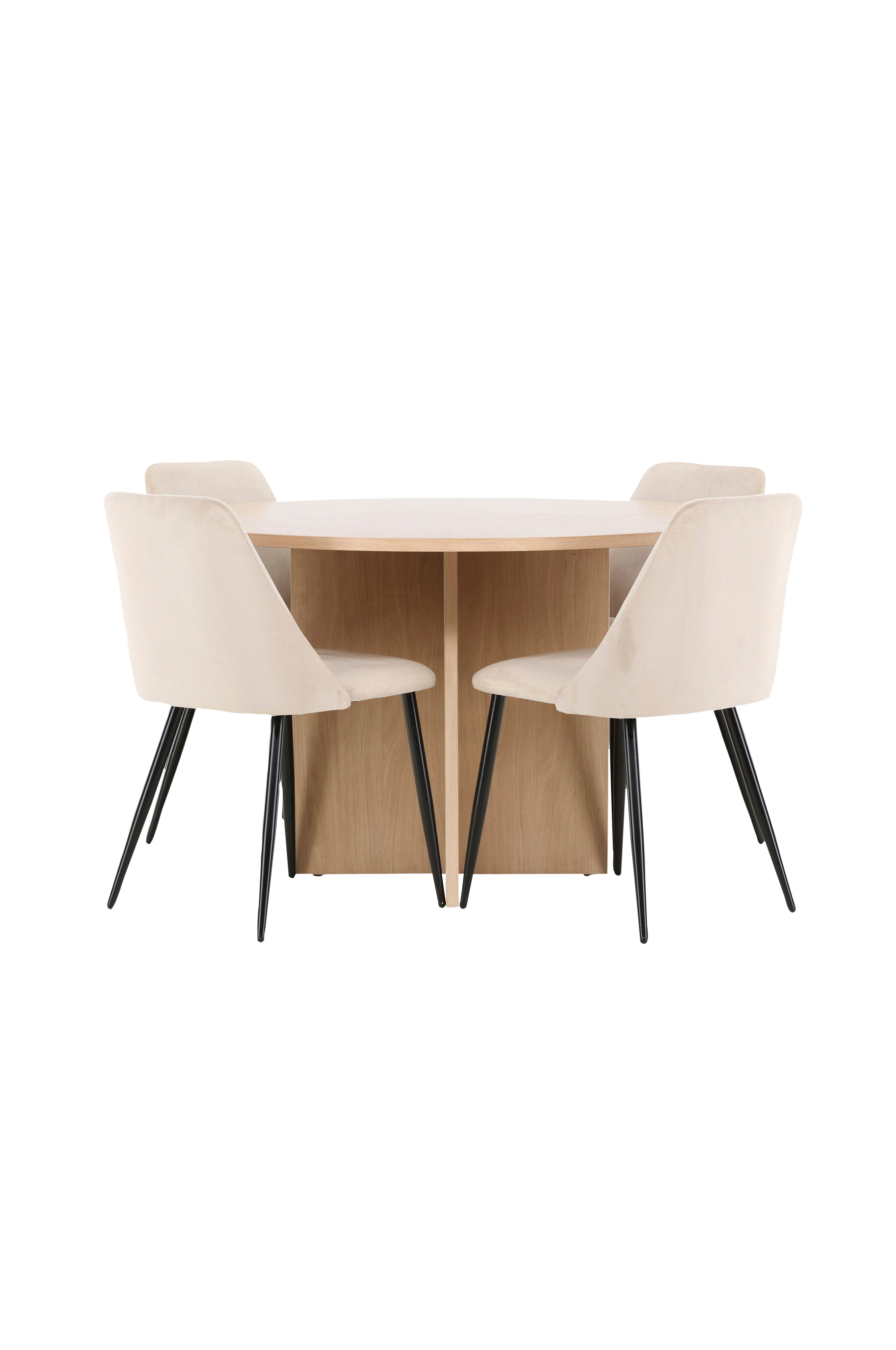 matbordet strada kombinerar elegant design med praktisk funktionalitet. Bordet är tillverkat av högkvalitativt fanerträ som framhäver materialets naturliga struktur och ger en luftig känsla till din matsal. Med en diameter på 120 cm är strada perfekt för vardagliga måltider, men när det behövs kan det enkelt förlängas till 170 cm för att rymma fler gäster. Dess robusta konstruktion och tidlösa design gör den till en pålitlig och elegant mittpunkt i ditt hem.