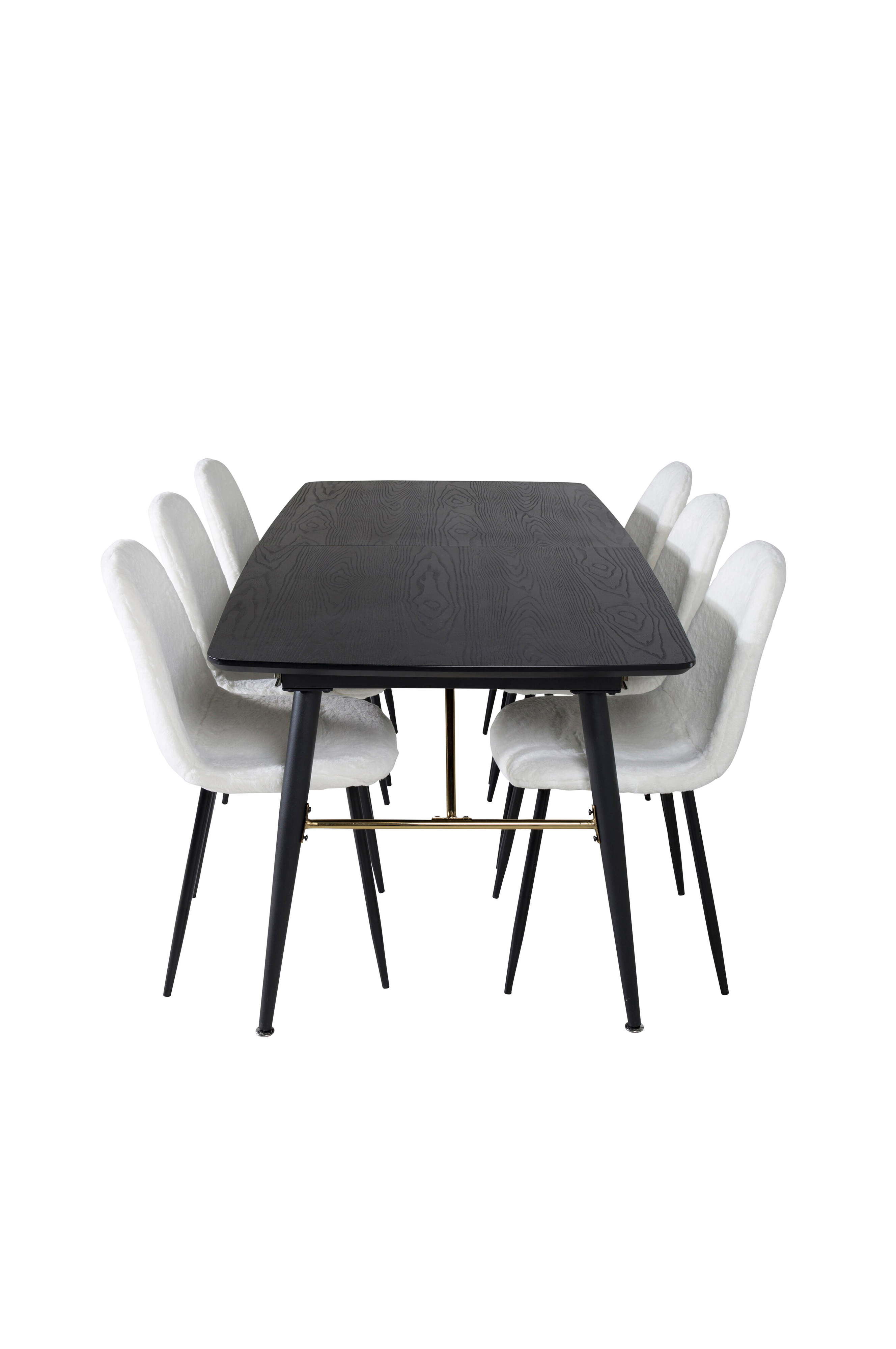 Modernt och hemtrevlig! Matbord gold har lyxiga detaljer nedtill och är förlängningsbar, och tillsammans med polar matstolar får du en matgrupp att längta hem till. Stolarna är bekväma – här sitter du gärna kvar länge och njuter av goda vänners sällskap!