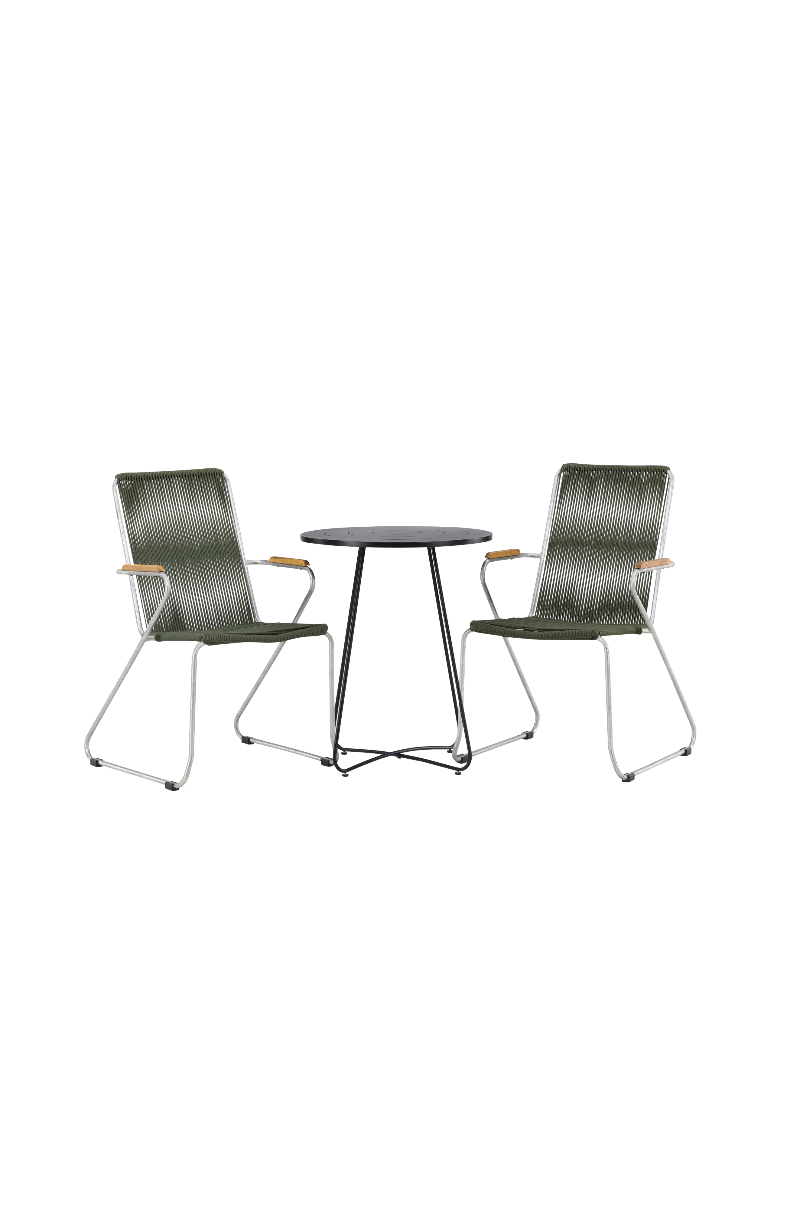 Skapa ett modernt och charmigt blickfång på den lilla balkongen eller uteplatsen! Matstolarna från serien bois har ett smäckert utförande i trendsäker design. Tillverkade i stilren zinkkonstruktion, sits i smäckert t rep och dekorativa armstöd i teak. Här i snygg kombination med ett nätt cafébord från serien bacong. Bordet har en nätt, rund toppskiva och smala ben i stål. Duka ut fikan i sommar och njut av trivsamma stunder.