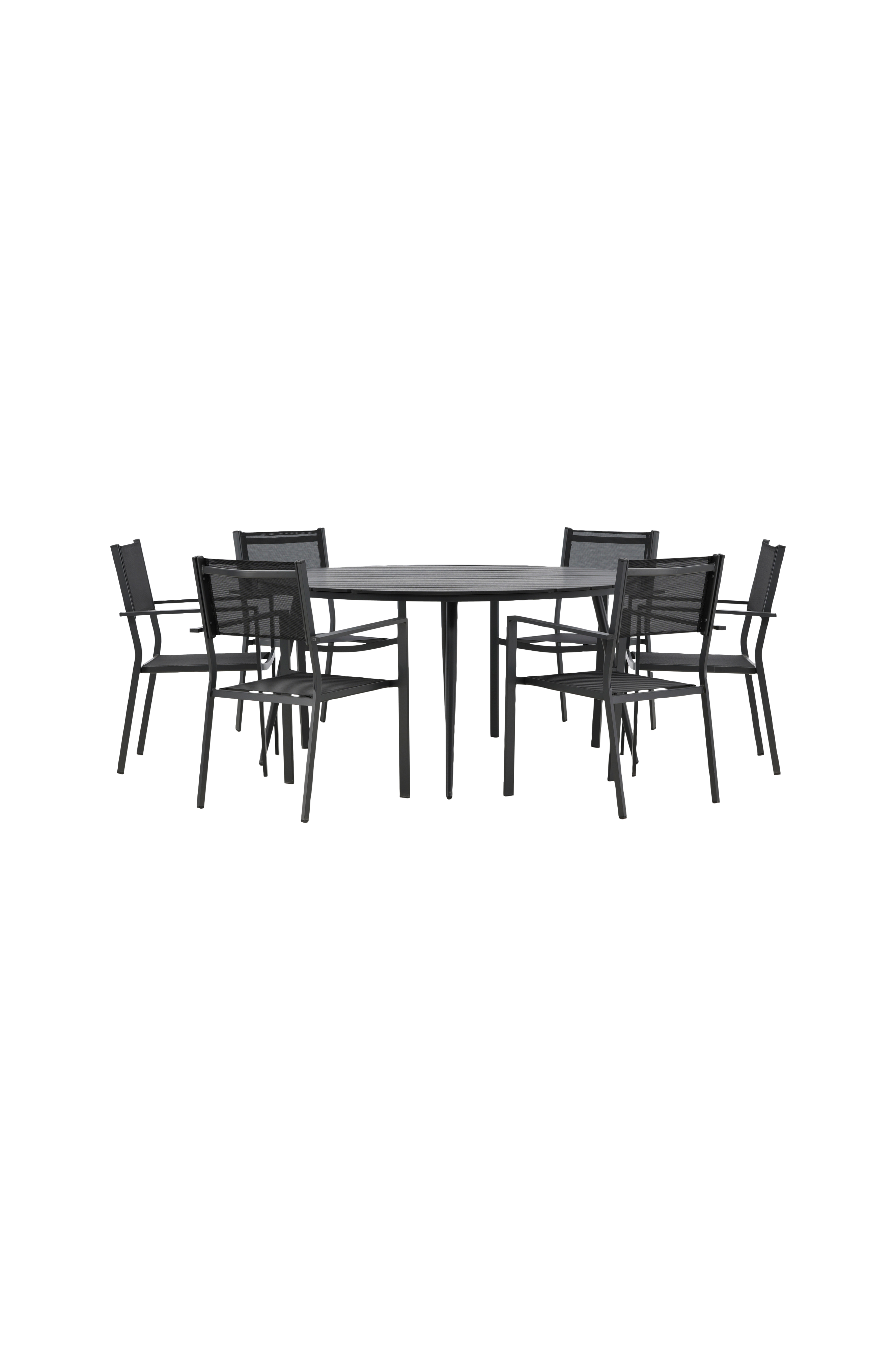 En läckert matchande matgrupp i kulör som rymmer plats för många - här hamnar ingen på kanten! Matbord break har en bordsskiva aintwood och ett klassiskt underrede i aluminium. Här i perfekt kombination med matstolar från serien copacabana. Stolarna är stapelbara med en sits i textilene och ram i aluminium. Låt tiden här bli dagens höjdpunkt!