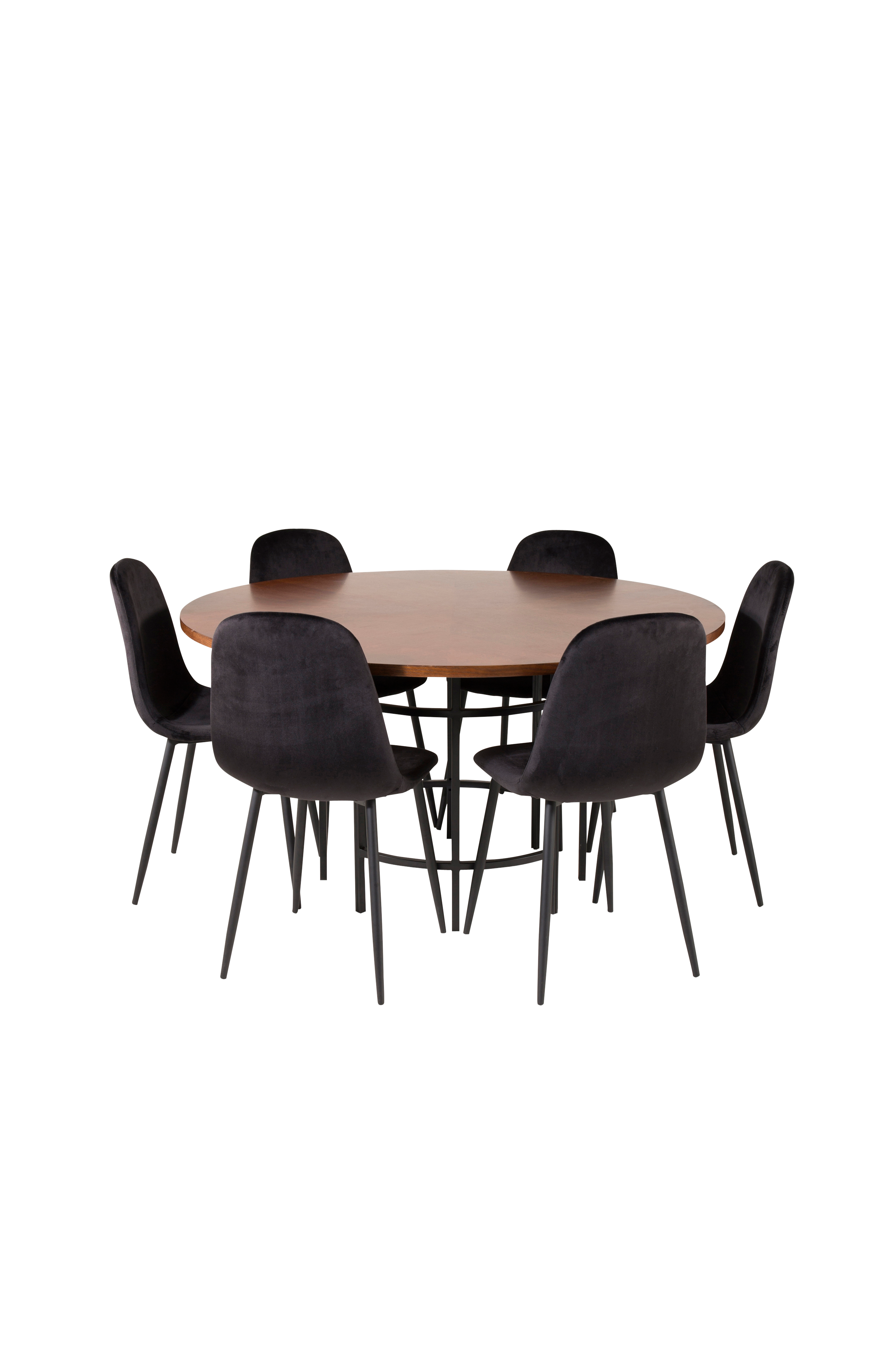 Copenhagen Furniture Fashion matbord med en rund topp i MDF samt fanér och bordsben i metall. Bordets mått: Diameter: 140cm, Höjd: 74cm. Matchas med 6st Penally matstolar i sammet och stolsben i metall. Stolens mått: Totalhöjd: 88cm, Bredd: 42,5cm, Djup: 53,3cm, Sitthöjd: 41,5cm. Bord och stol kräver enklare montering.