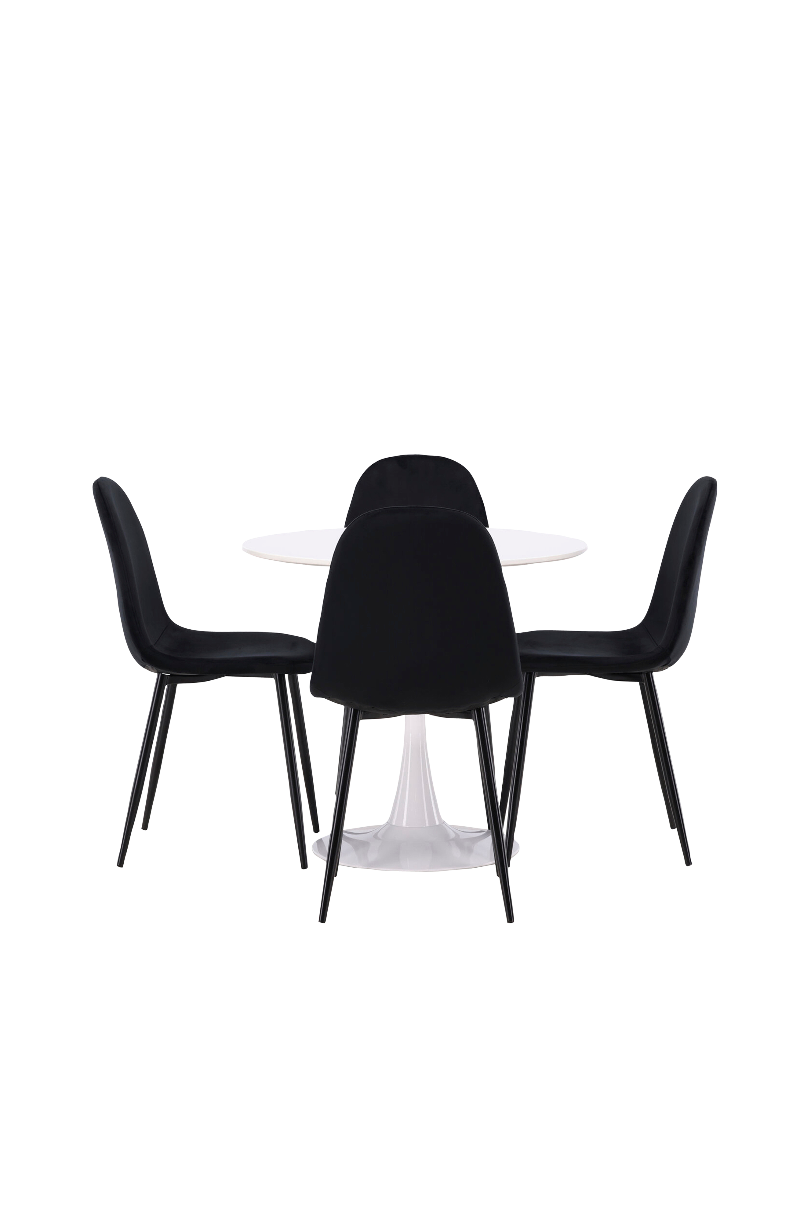 Ett sammetslent blickfång! Det rektangulära matbordet danburi har en klassisk design med en tunn bordsskiva i svart mdf och lätt utsvängda ben i bokträ med dekorativa detaljer i svart stål. Här i snygg kombination med matstolar från serien polar. Stolen har en helklädd design, ben i svart pulverlackerad metall samt rundad rygg och sits i svart sammetstyg med mjuk stoppning. Det kan inte gå fel med en svart matgrupp! Bordets mått: 120x60cm.
