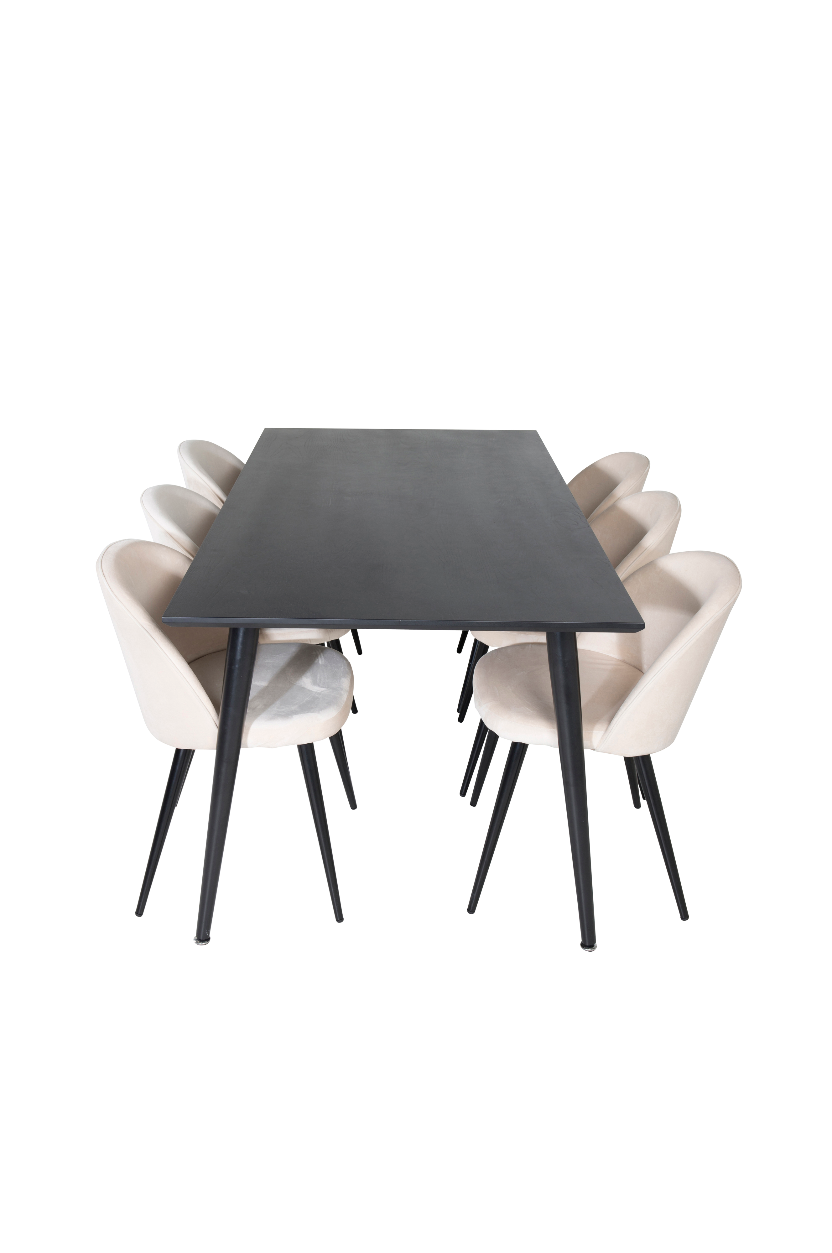 Doris matbord men topp i MDF och bordsben i metall. Matchas med 6st Valleta matstolar med stolsits i sammet och stolsben i metall. Bord och stol kräver enklare montering.