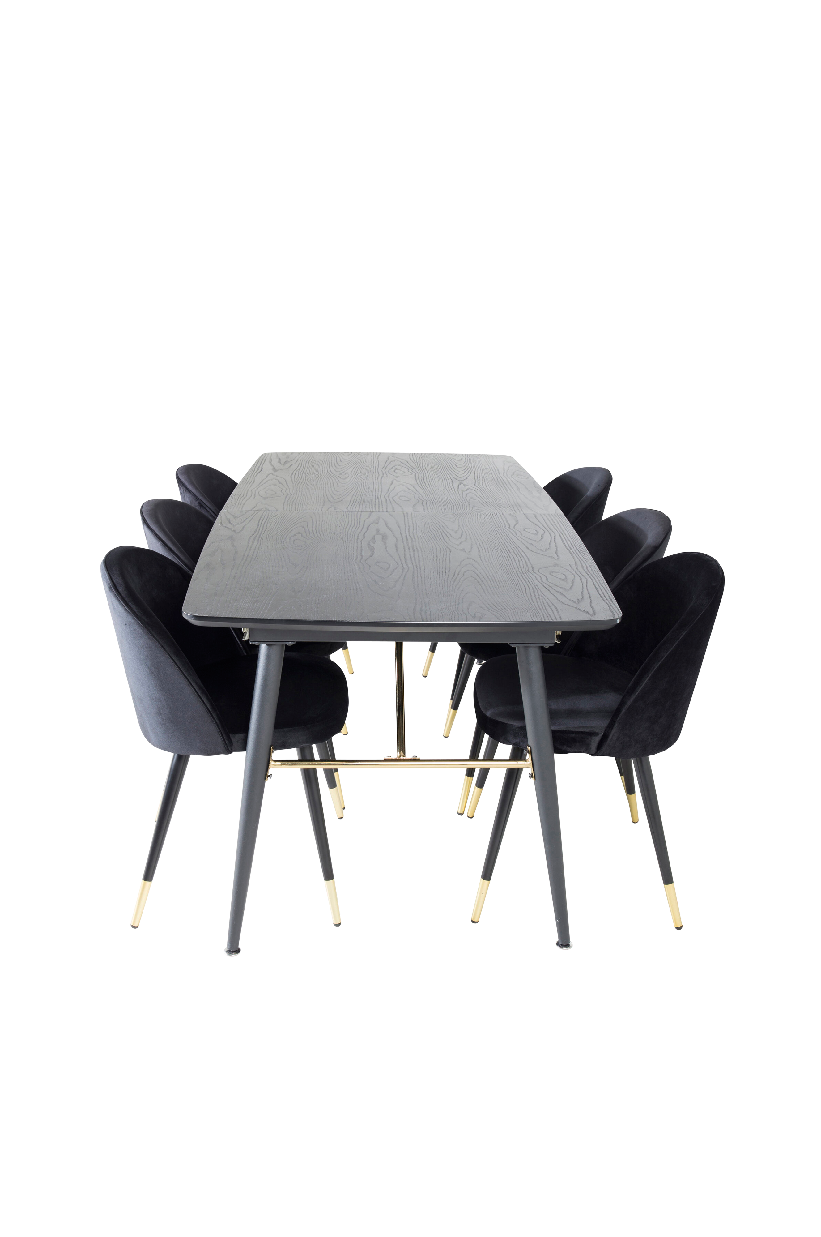 Modernt och hemtrevlig! Matbord gold har lyxiga detaljer nedtill och är förlängningsbar, och tillsammans med velvet matstolar får du en matgrupp att längta hem till. Stolarna är mjuka och bekväma – här sitter du gärna kvar länge och njuter av goda vänners sällskap!