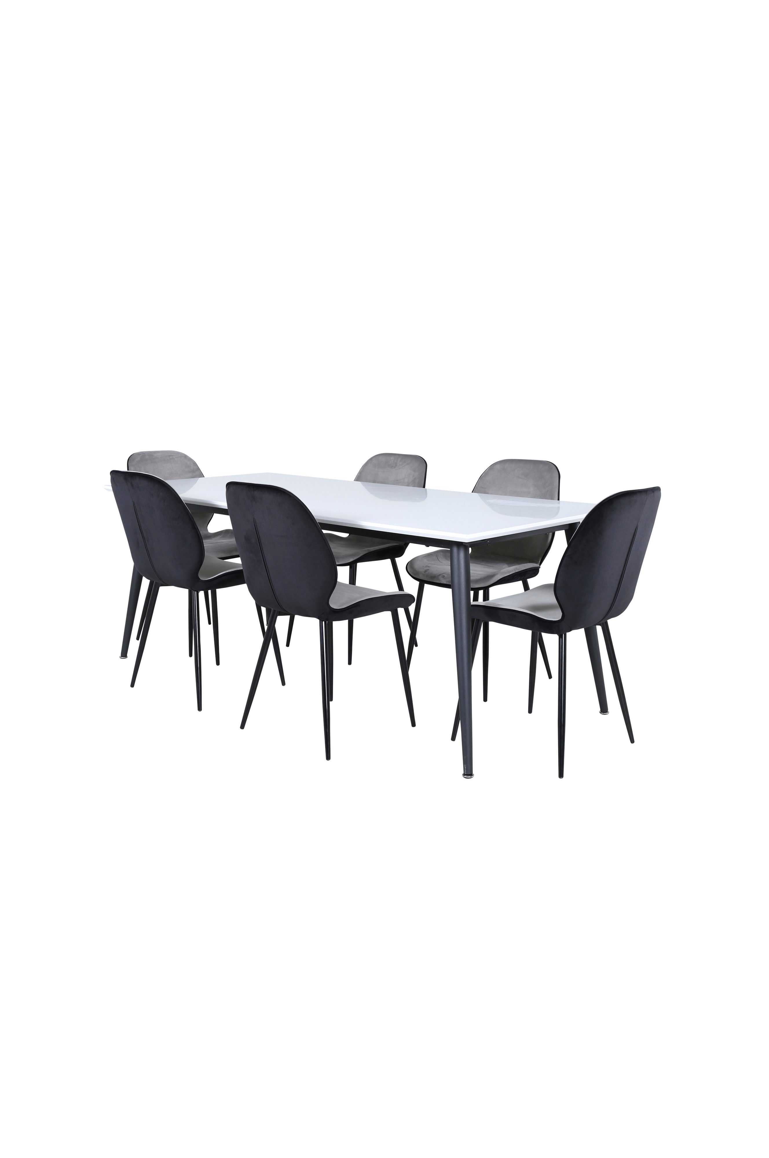 Jimmy matbord förlängningsbart upp till 285 cm med en bordstopp i HPL och MDF och bordsben i metall. Matchas med 6 st Emma matstolar med stolsits i sammet och stolsben i metall. Bord och stol kräver enklare montering. Bordets mått: Längd: 195 cm, bredd: 90 cm, höjd: 76 cm. Stolens mått: Sittdjup: 40 cm, sittbredd: 47 cm, sitthöjd: 45 cm.