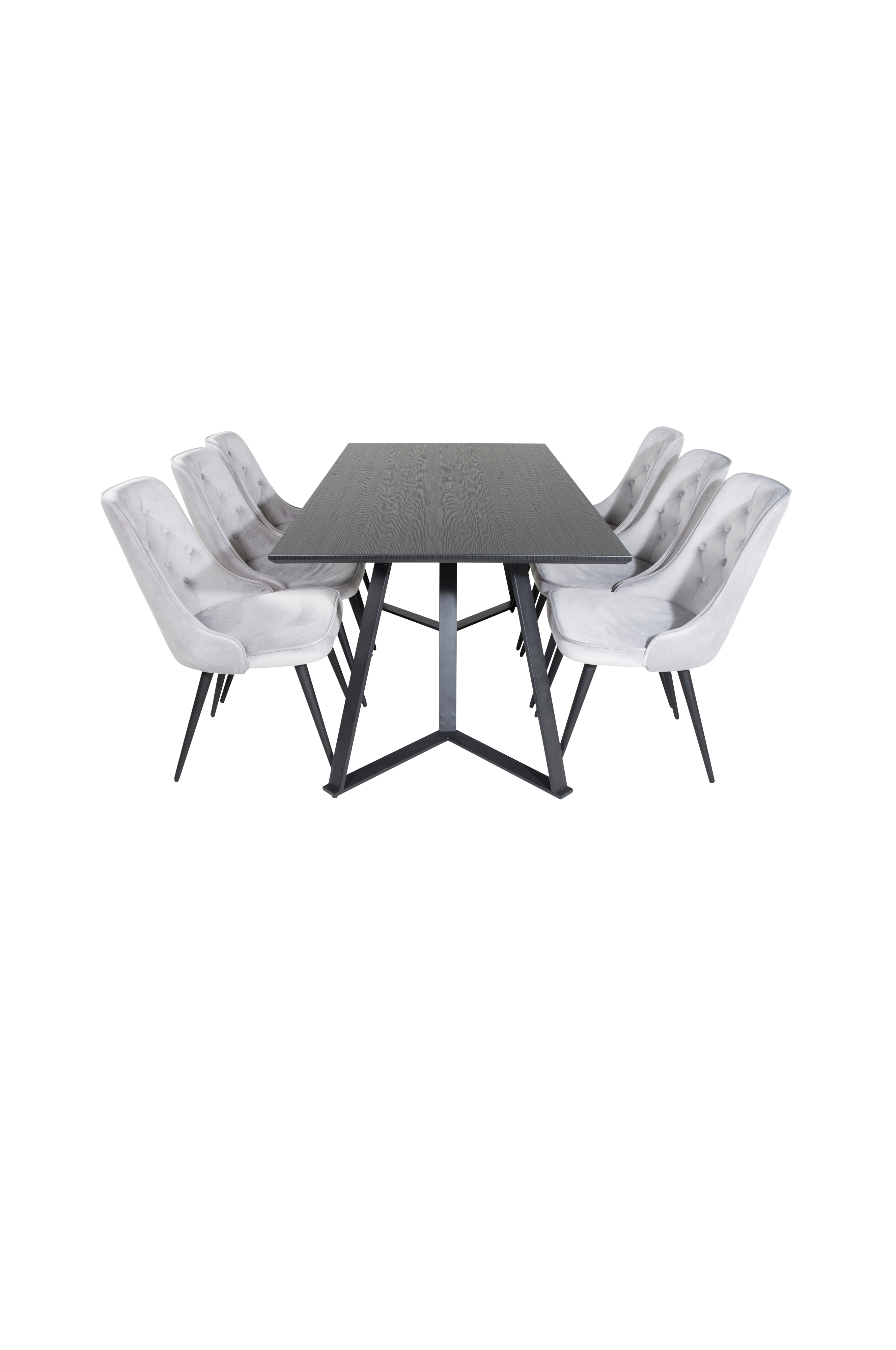 Maggie matbord med en topp i MDF och bordsben i metall. Matchas med 6st Valleta matstolar med stolsits i sammet med dekorsöm och stolsben i metall. Bord och stol kräver enklare montering. Bordets mått: Längd: 180cm, Bredd: 90cm, Höjd: 75cm. Stolens mått: Sittdjup: 49cm, Sittbredd: 50cm, Sitthöjd: 49cm.