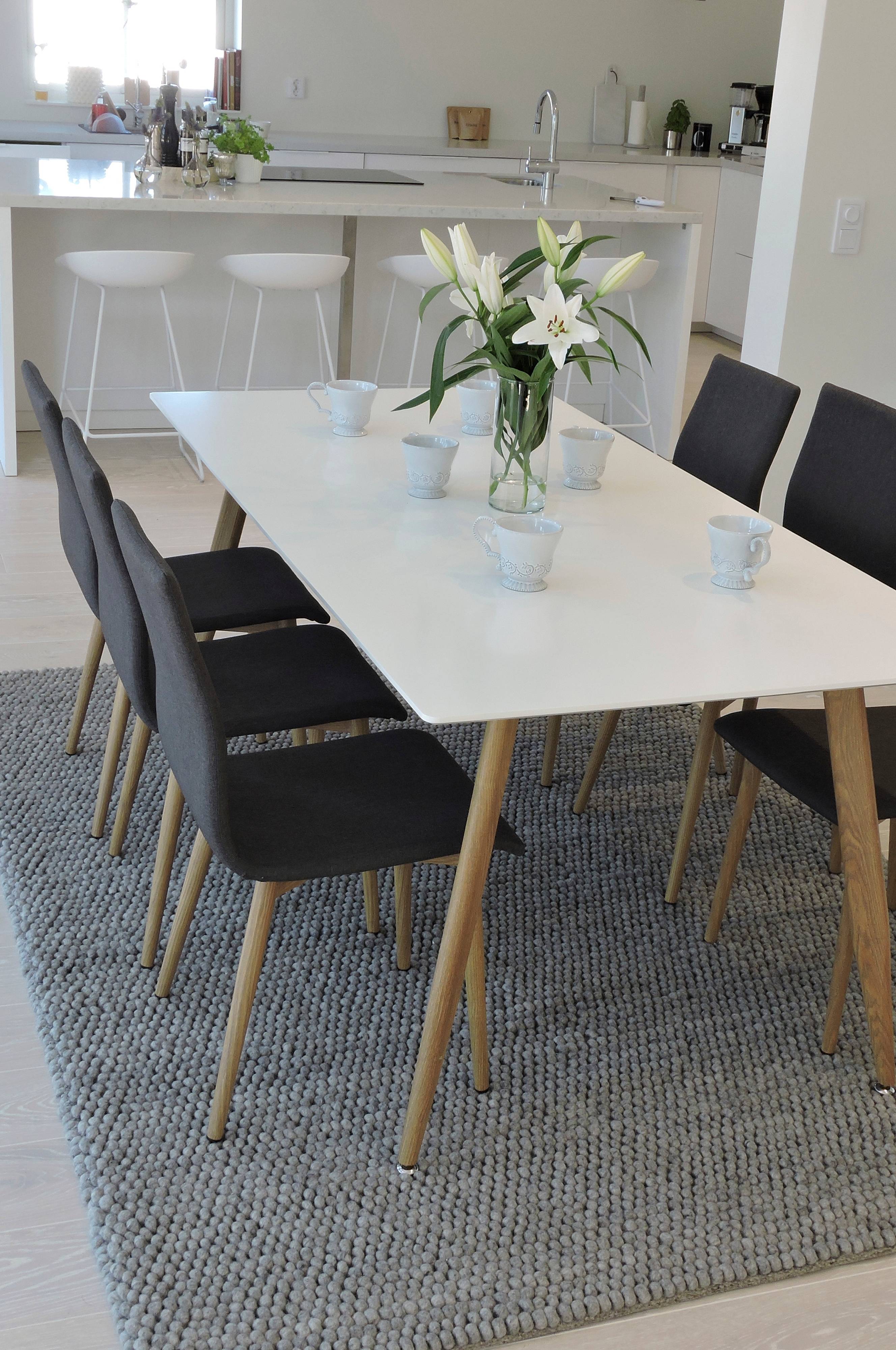 Polarbord med Windustolar är en modern matgrupp med smakfulla materialval och färger. Med den vita bordsskivan i MDF, de vinklade metallbenen klädda i ek och de grå tygklädda sitsarna passar matgruppen lika bra i det moderna som i det klassiska hemmet. Stolen har en god sittkomfort, här sitter du gärna och länge med dina middagsgäster. Bord: Bredd 90 cm Längd: 180cm Höjd: 75cm Stol: Höjd 86 cm Djup: 53 cm Sitthöjd: 45 cm Sittdjup: 41cm Bredd: 42