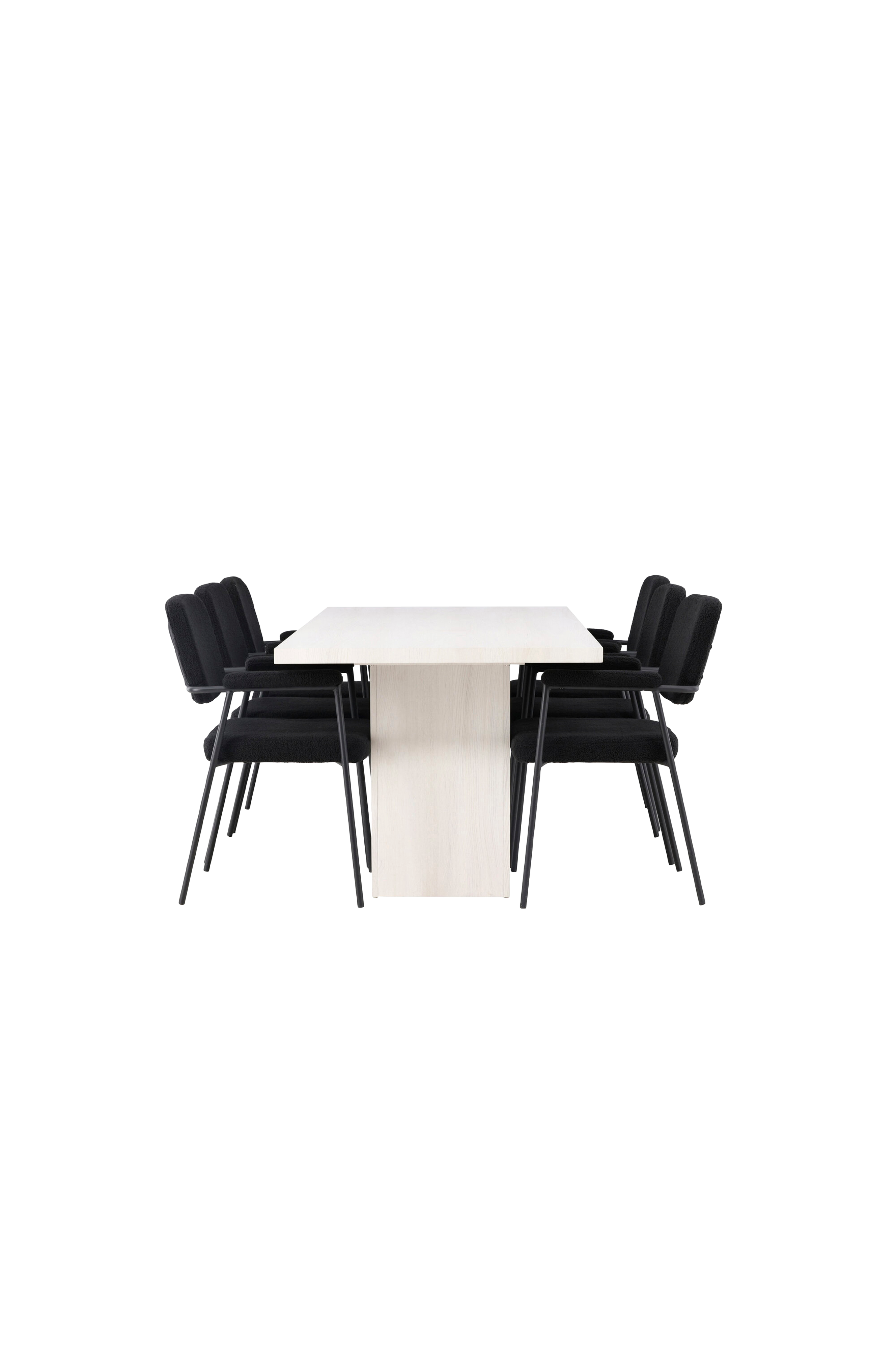olga är det rektangulära matbord med putsad mdf-bordsskiva och två robusta, blockformade bordsben i samma material, som blir en fantastiskt vacker inredningsdetalj. Med sin stilrena och robusta utformning fångar det ögat och imponerar på gäster. Komplettera detta fantastiska matbord med matstolar från serien yesterday. Stolens bouclétyg ger en sofistikerad touch och känns underbart mjuk mot huden. Med sina smala stolsben och integrerade armstöd i metall får du inte bara en snygg och modern stol, utan även extra bekvämlighet.