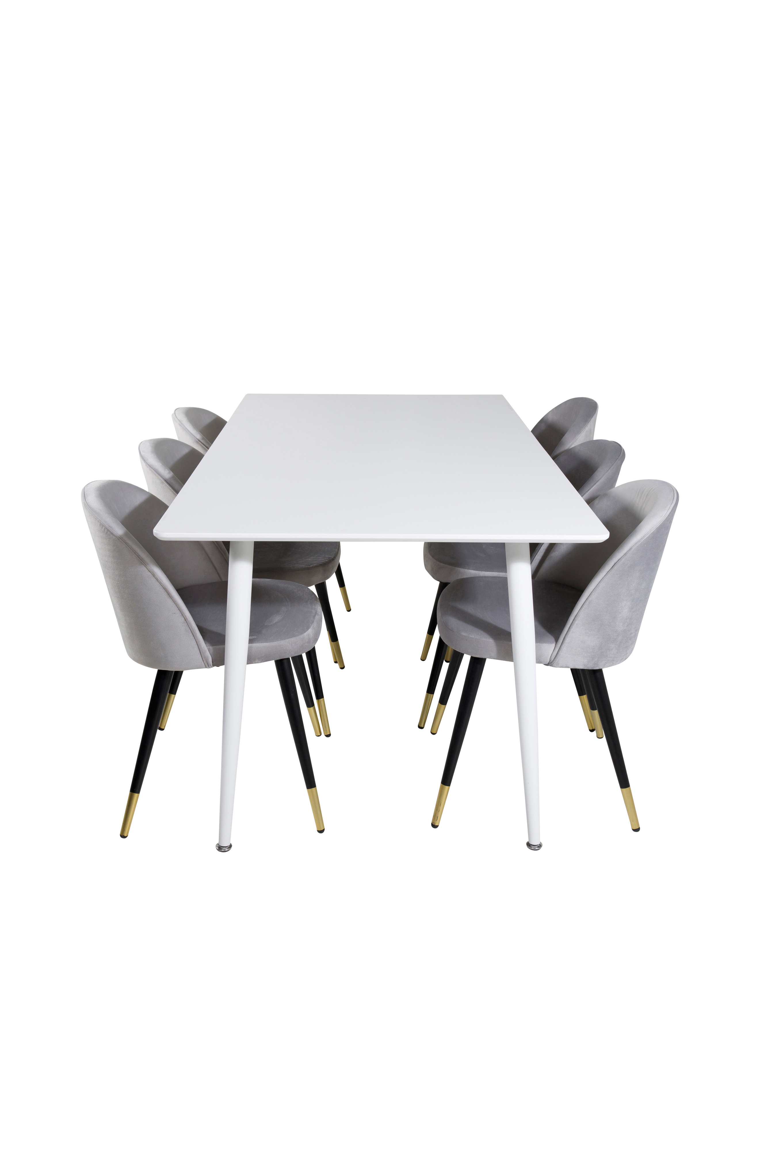 Penally matbord med en topp i MDF och bordsben i metall. Matchas med 6st Valleta matstolar med stolsits i sammet och stolsben i metall med detaljer i mässing. Bord och stol kräver enklare montering. Bordets mått: Längd: 180cm, Bredd: 90cm, Höjd: 75cm. Stolens mått: Sittdjup: 42,5cm, Sittbredd: 41cm, Sitthöjd: 46,5cm.