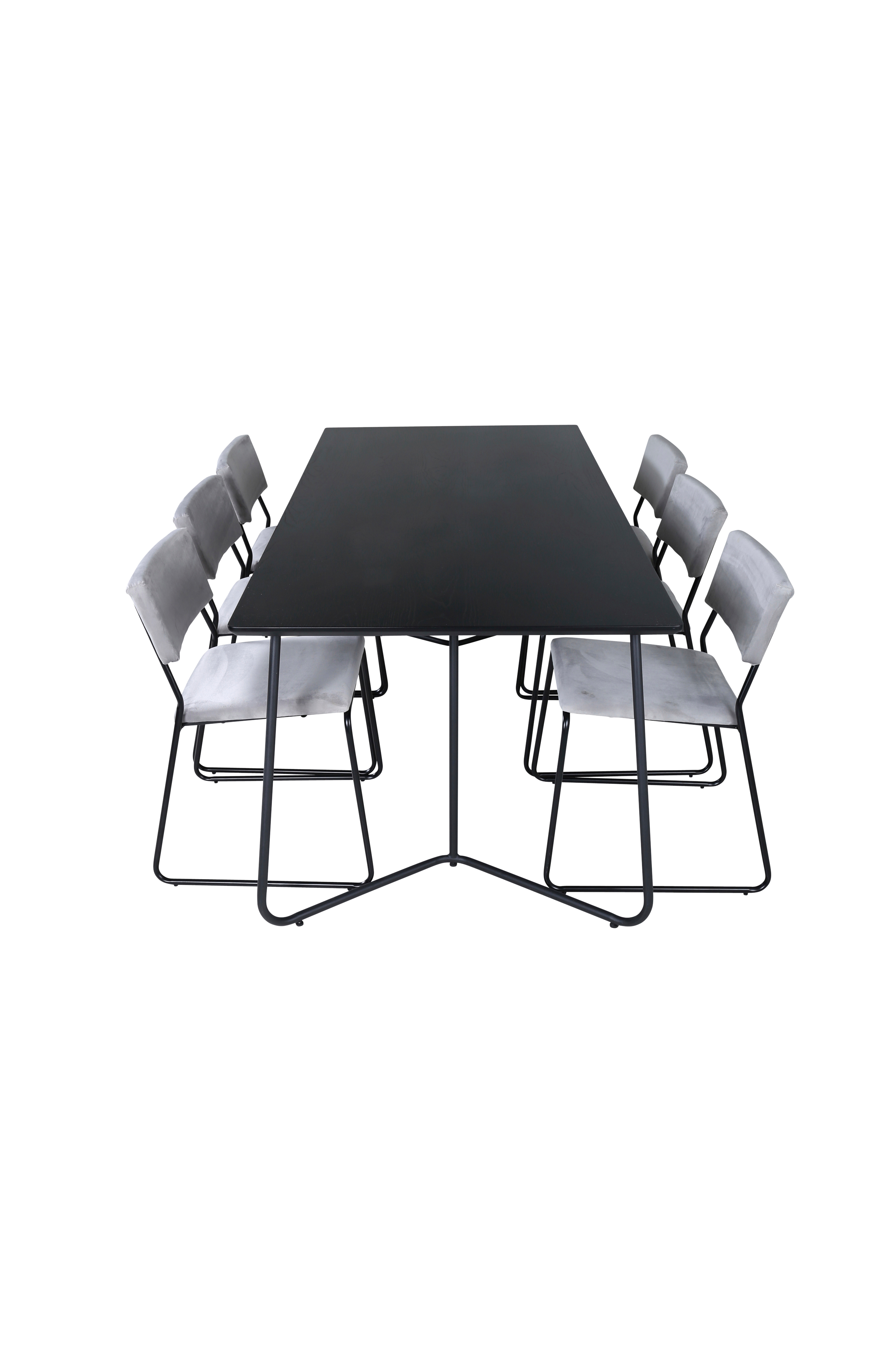 Petra matbord med en bordstopp i MDF med faner och bordsben i järn. Matchas med 6 st Kenth matstolar med stolsits i konstläder och stolsben i järn. Bord och stol kräver enklare montering. Bordets mått: Längd: 190 cm, bredd: 90 cm, höjd: 75 cm. Stolens mått: Sittdjup: 42 cm, sittbredd: 40 cm, sitthöjd: 48,5 cm.