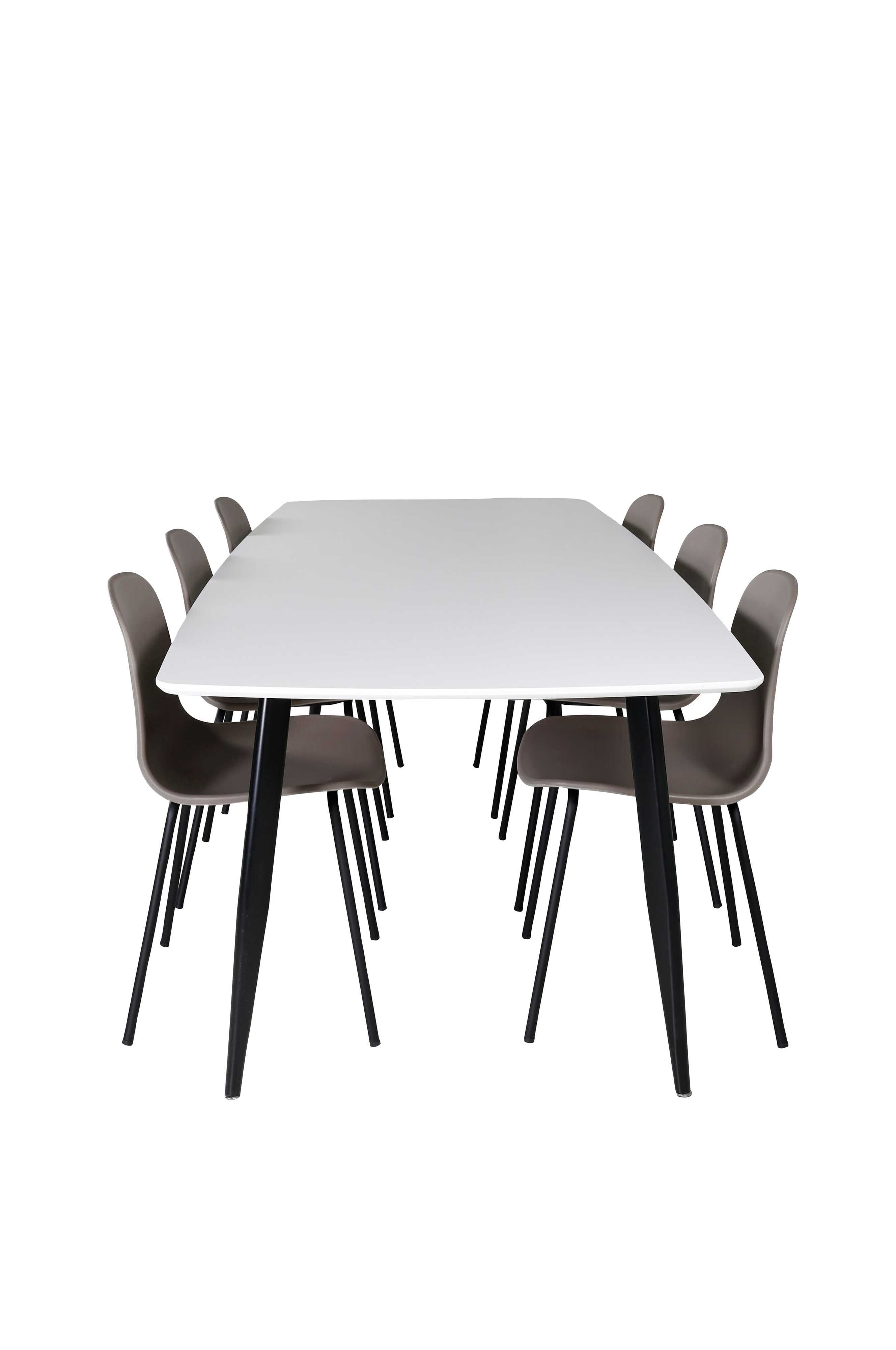 Praktiska khakifärgade matstolar i serien artic tillsammans med pompös mat bonded polar. Här får du en kombination som är lätt, robust och modern. Samla familjen för goda middagar och umgänge!