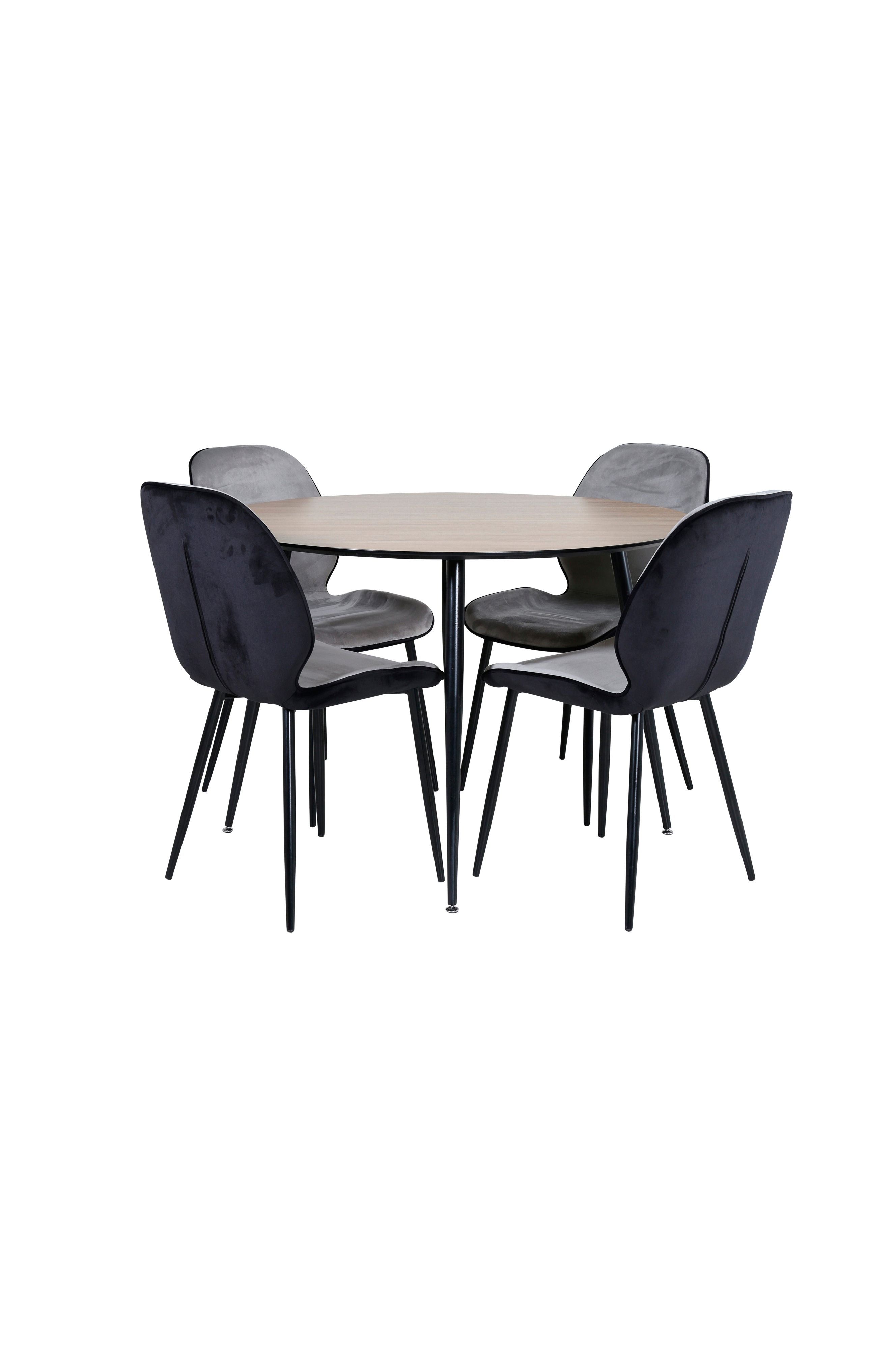 Silar matbord med en rund bordstopp i MDF och bordsben i metall. Matchas med 4 st Emma matstolar med stolsits i sammet och stolsben i metall. Bord och stol kräver enklare montering. Bordets mått: Diameter: 100 cm, höjd: 75 cm. Stolens mått: Sittdjup: 40 cm, sittbredd: 47 cm, sitthöjd: 45 cm.