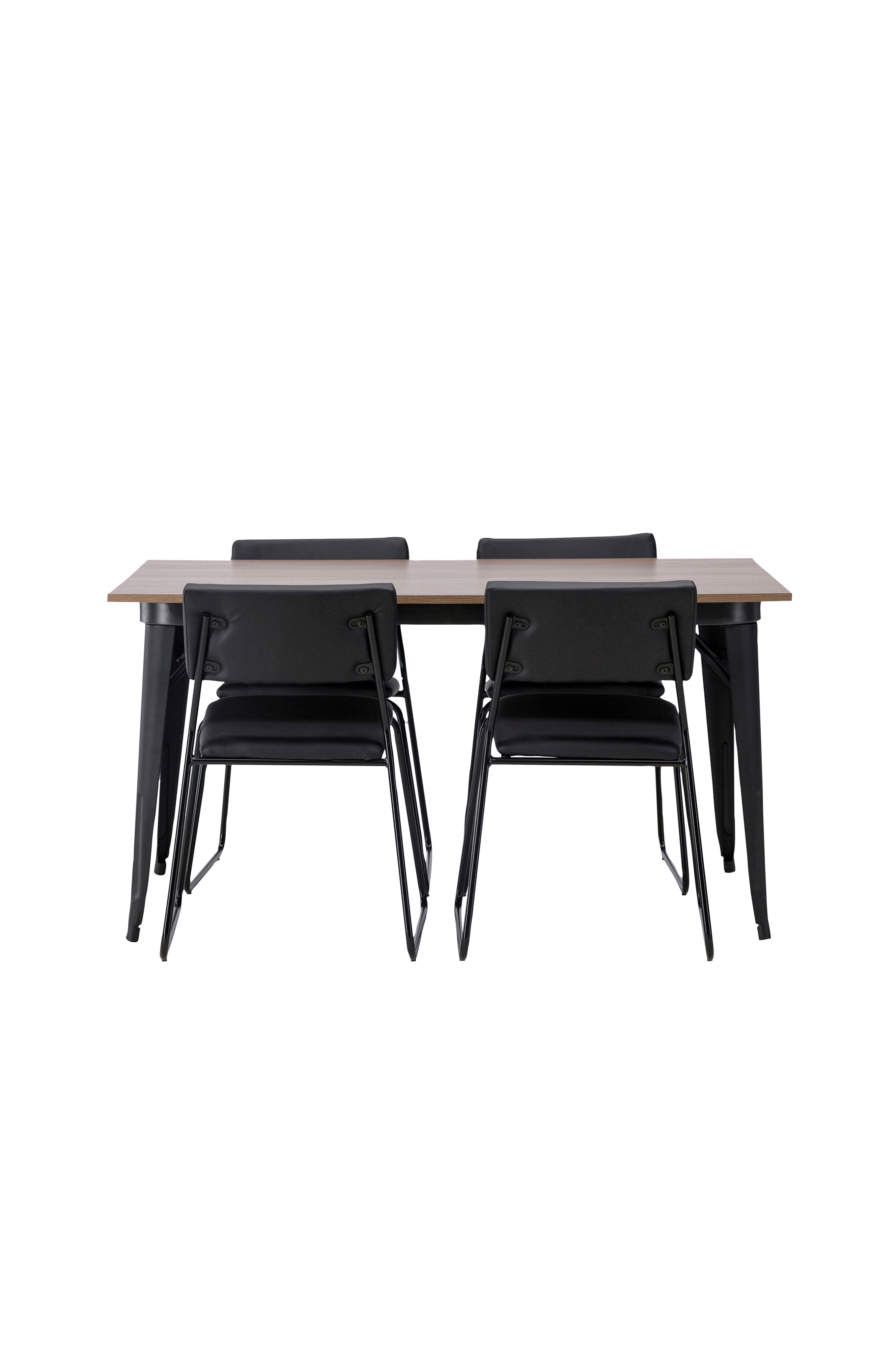 En charmig kombination av minimalistiska former och skandinavisk design! Matbordet från serien tempe har en stilren, skandinavisk design. Tillverkad med en kvadratisk bordsskiva i färgad mdf och bordsben i metall. Här tillsammans med matstolar från serien kenth. Den minimalistiska, moderna designen skapar en luftig känsla. Stolen har en rygg och sits i polyuretanskinn och polyester samt dekorativt smala stolsben i järn. Bjud in till många sociala stunder framöver! Bordets mått: 140x80cm.