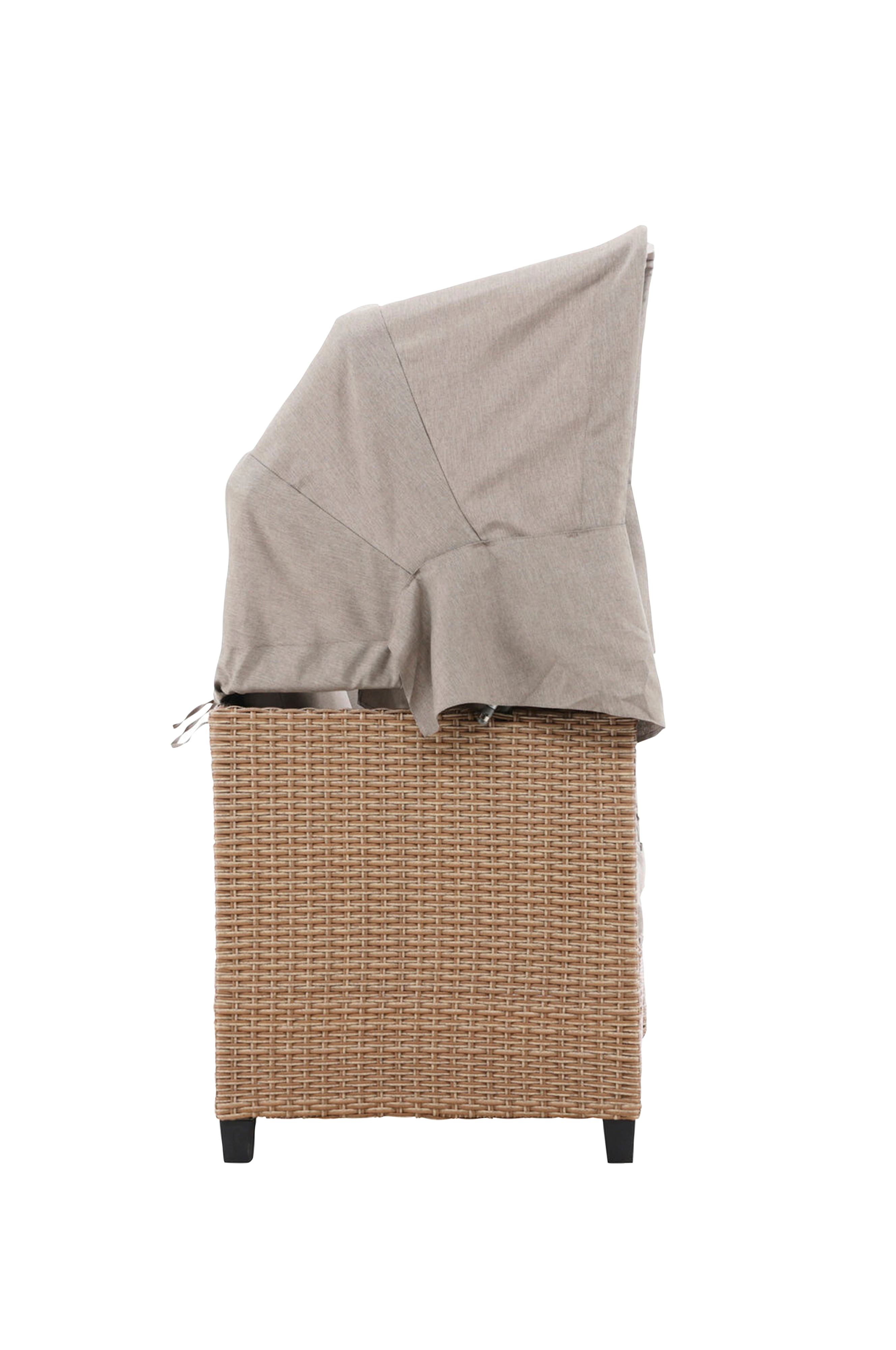 Solstolen från nopy-serien tar dina avkopplande sommardagar till nästa nivå! Tillverkad av svart konstrotting med en justerbar lutningsdel för extra komfort. Det justerbara parasollet i beige polyestertyg gör att du enkelt kan välja om du vill ligga i skuggan eller solen. Mjuka, grå tuftade kuddar medföljer för extra komfort. Ta en god bok eller njut av en härlig tupplur - här kan du sitta eller ligga bekvämt i timmar!
