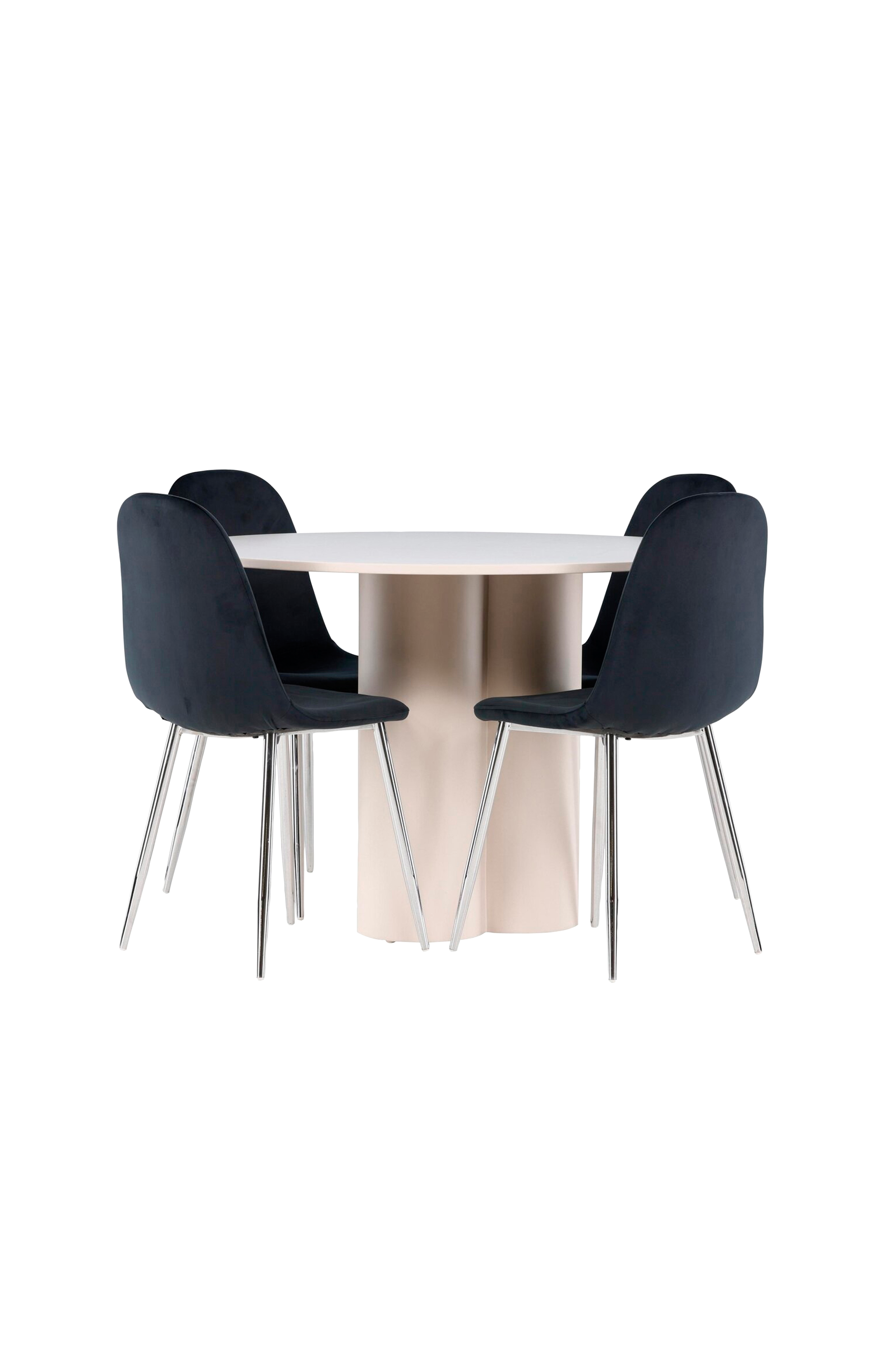 Skapa en elegant och inbjudande matplats med vår eleganta matgrupp som kombinerar olivia-bordet med de lyxiga polar-stolarna. Denna matgrupp är perfekt för både vardagsmiddagar och festliga tillfällen och ger din matsal en modern och sofistikerad atmosfär. Bordet olivia är tillverkat av mdf och ger en varm och inbjudande känsla till din matsal. Med en diameter på 110 cm erbjuder bordet gott om utrymme för mat och samtal, samtidigt som dess runda form skapar en balanserad och social miljö. Bordets robusta konstruktion garanterar långvarig användning och stabilitet. De fyra polarstolarna kompletterar bordet perfekt med sina eleganta sitsar klädda i sammet. Stolarna erbjuder både komfort och stil, vilket gör dem idealiska för långa och trevliga middagar med familj och vänner. Deras moderna design med höga ryggstöd och mjuka sitsar ger din matsal en sofistikerad och modern touch. Denna matgrupp är en perfekt kombination av estetik och funktionalitet, vilket gör den till ett utmärkt val för dig som vill ha en elegant och bekväm matplats. Uppgradera din matsal med en kombination av olivia-bordet och polar-stolarna och skapa en plats där minnen och glädje delas.
