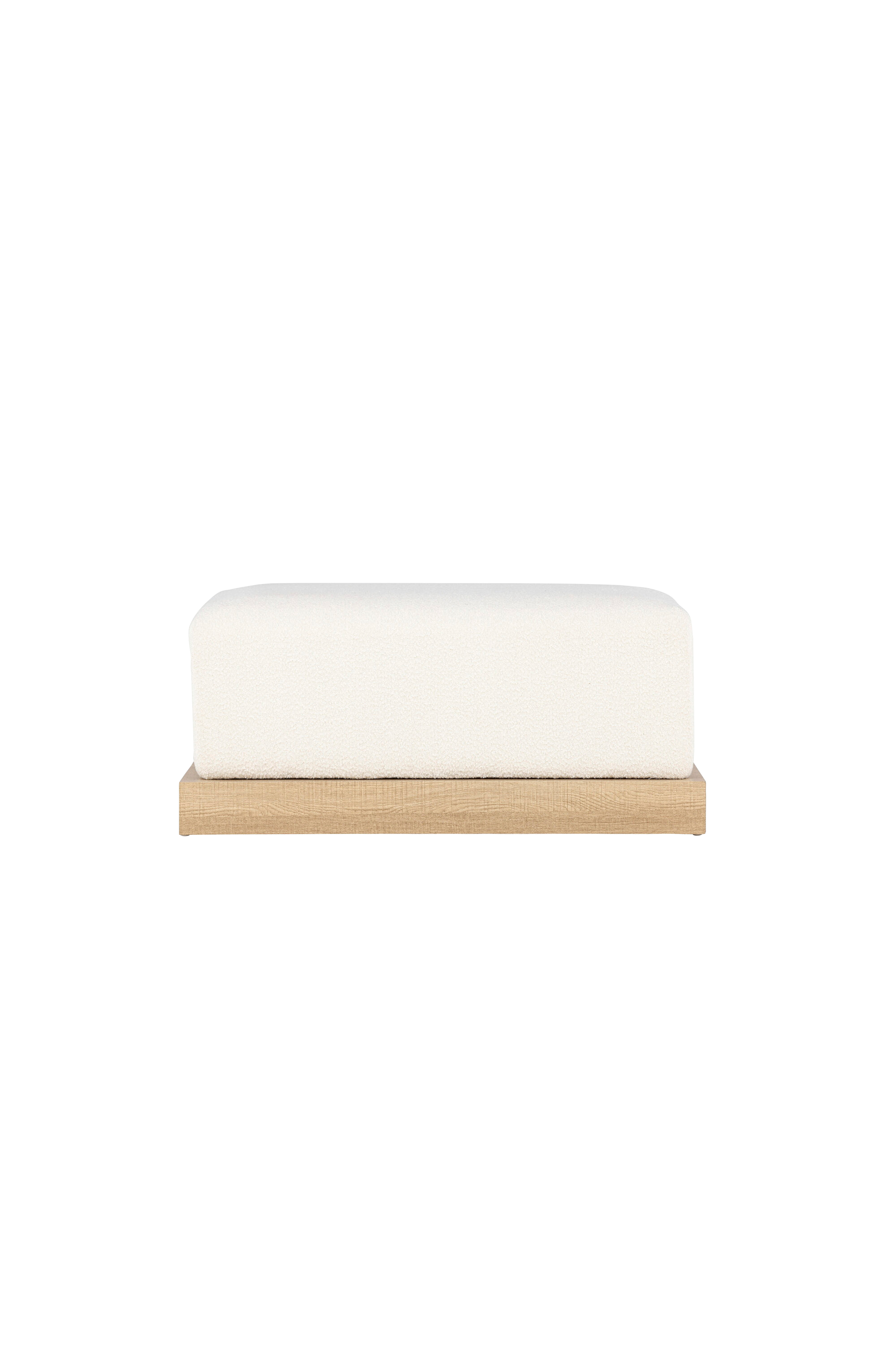 Ge ditt rum ett modernt lyft med vår rektangulära ottoman ivy! Med sin trendiga och funktionella design i bouclétyg är denna ottoman det perfekta sättet att lyfta utseendet på ditt rum på ett modernt sätt. Den dekorativa mdf-träramen i botten ger inte bara stabilitet utan kompletterar också dess rektangulära form på ett elegant sätt. Använd den som en extra sittplats när det behövs eller som en avkopplande fotpall för att komplettera din inredning med en touch av moderna trender. Den rektangulära formen gör den lätt att integrera i olika utrymmen, medan det vita bouclétyget ger en fräsch och modern känsla till rummet. Skapa en harmonisk miljö med denna praktiska och trendiga ottoman som är både funktionell och elegant. Ottomanens mått: bredd: 100cm, djup: 70cm, höjd: 45cm.