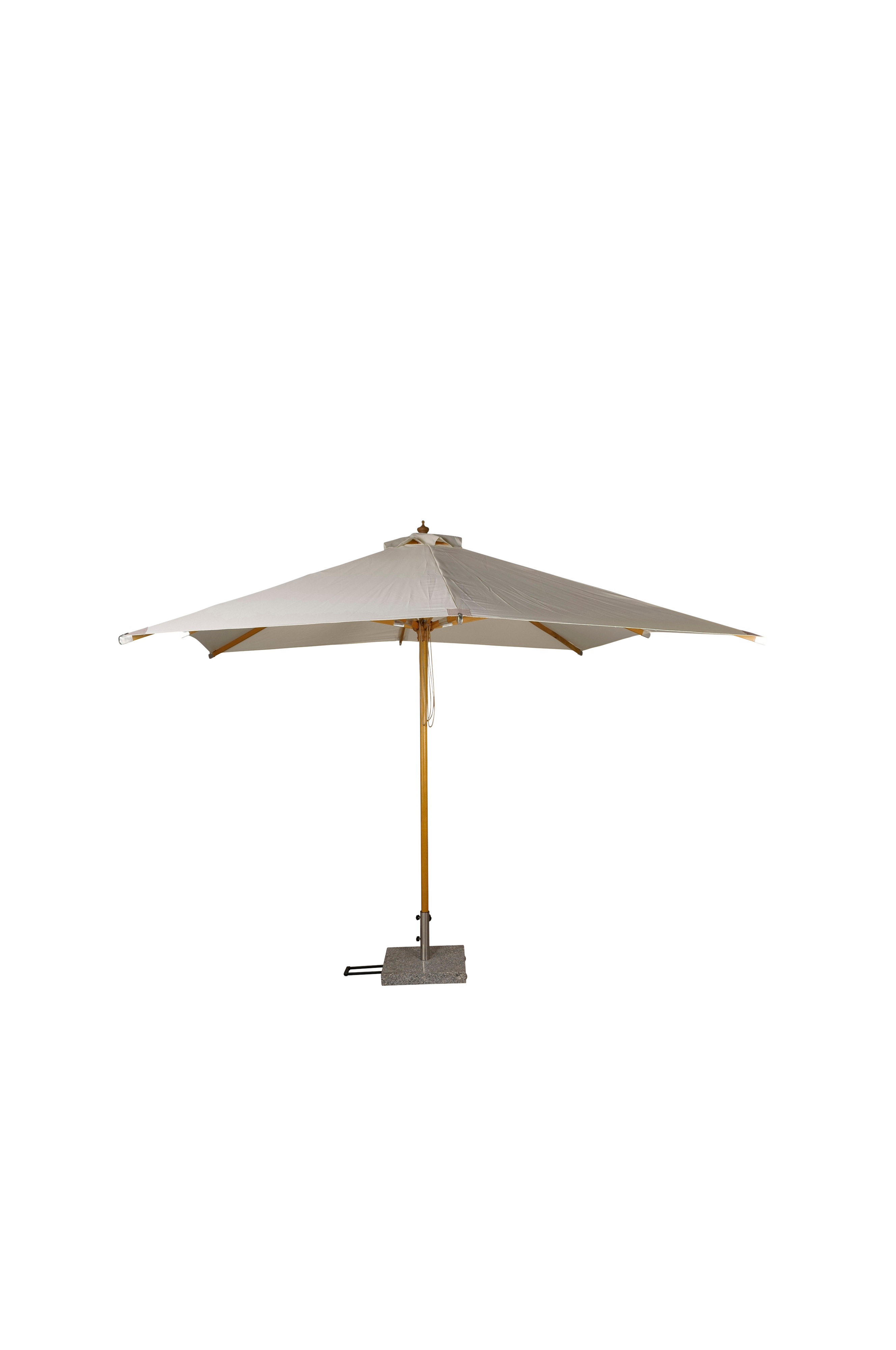 Naxos parasoll i polyester och en stomme i trä. Levereras utan fot. Mått: Diameter: 300 cm, Höjd: 270 cm.