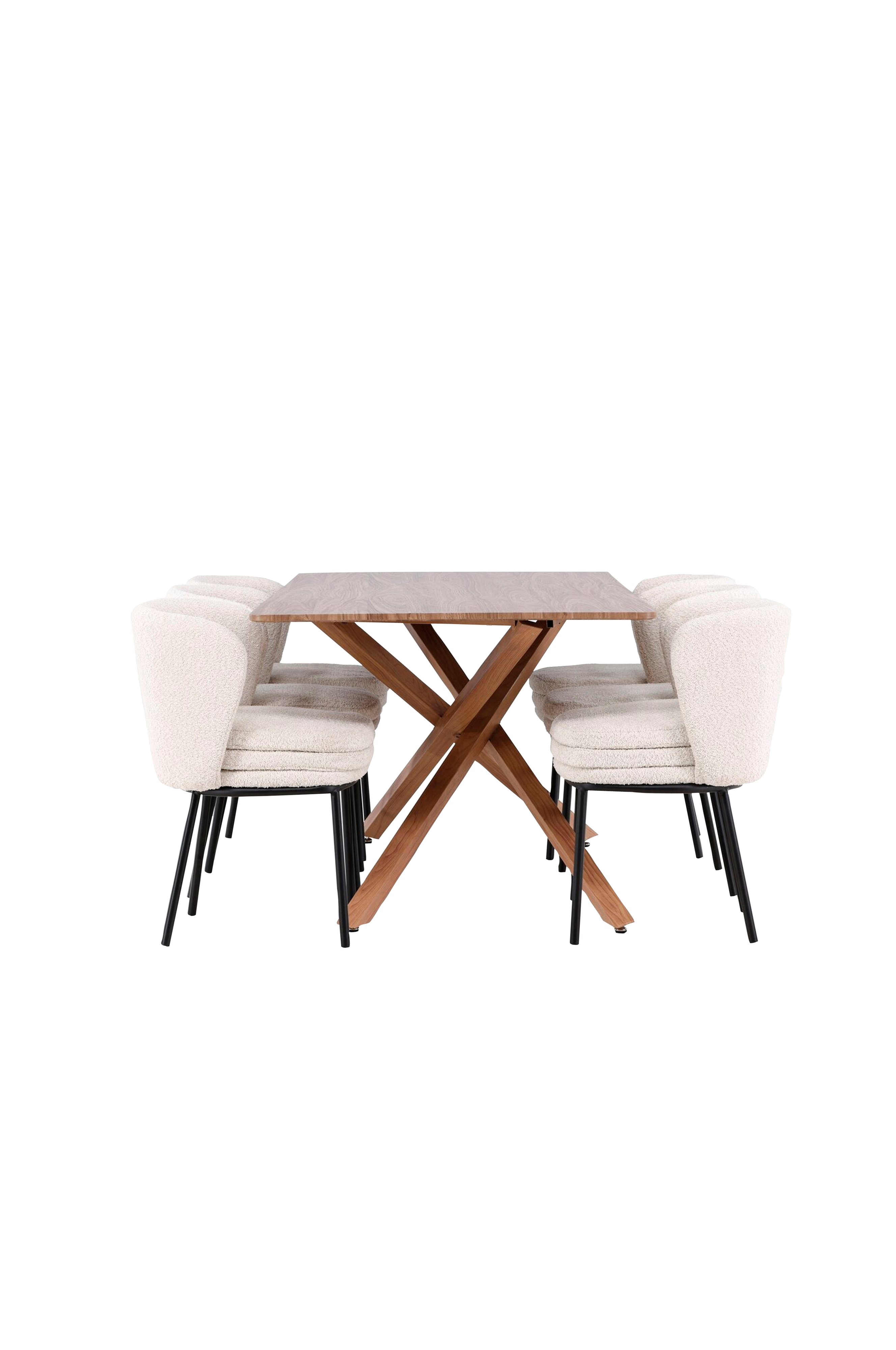 Upptäck den perfekta matsalsuppsättningen med matstolarna Agnes och matbordet Piazza - en kombination av enkel skönhet, stil och funktionalitet för ditt hem. Agnes matstol har en sits i bouclé och eleganta stålben som ger en modern och sofistikerad estetik. Den mjuka och strukturerade sitsen i bouclé ger en varm och inbjudande känsla, medan stålbenen ger en modern touch. Agnes skapar en harmonisk atmosfär och ger din matsal eller ditt kök en imponerande visuell effekt. Med sin eleganta design och bekväma sits är Agnes matstol det perfekta valet för att samlas runt matbordet med familj och vänner.