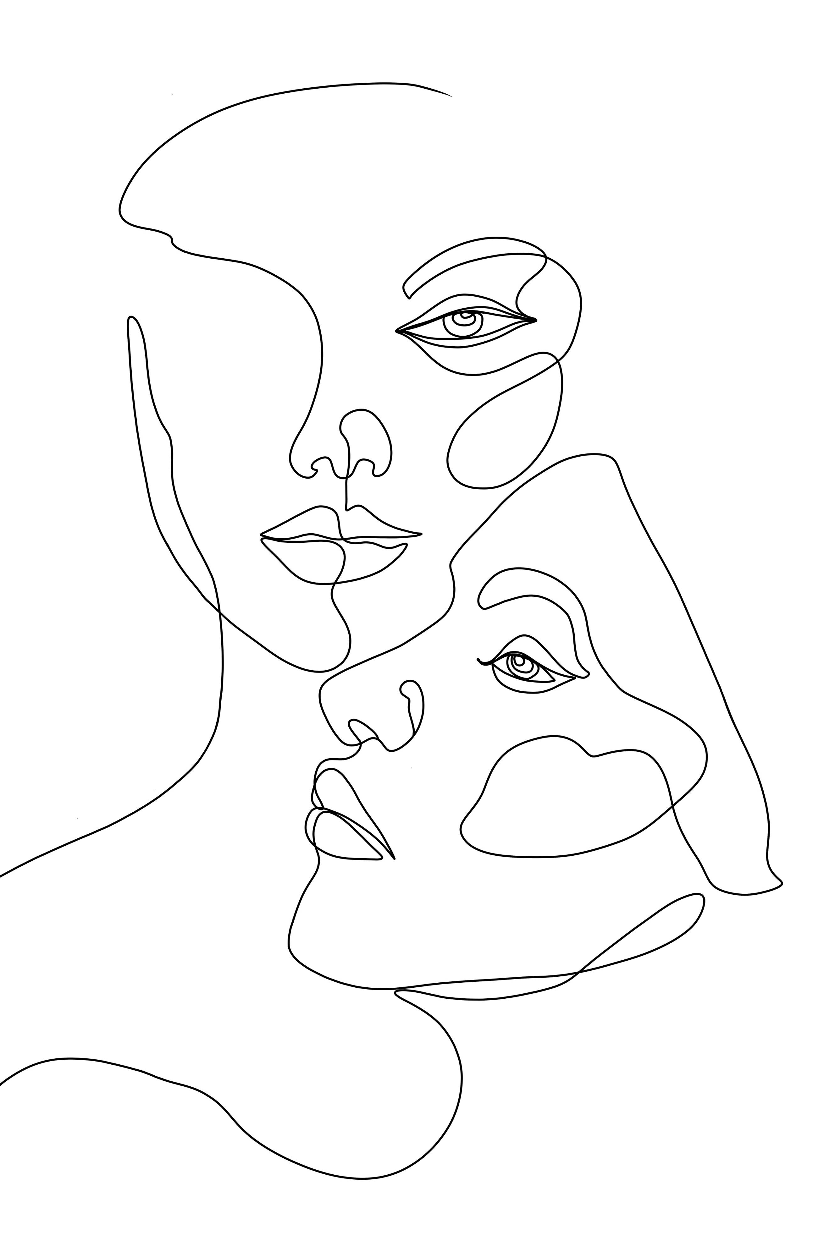 Minemaliska line-art illustrationer är ett enkelt sätt att ge ditt hem en mer trendig och stilsäker look utan att upplevas som tråkig! Motivet för detta print är två ansikten som är illustrerade med svarta linjer mot en vit bakgrund. Fördelen med den minimalistiska konstformen och line-arten är att det är enkelt att kombinera sådan konst med dels inredening men också med andra posters för att skapa en enhetlig känsla i hemmet! Mått 12x30