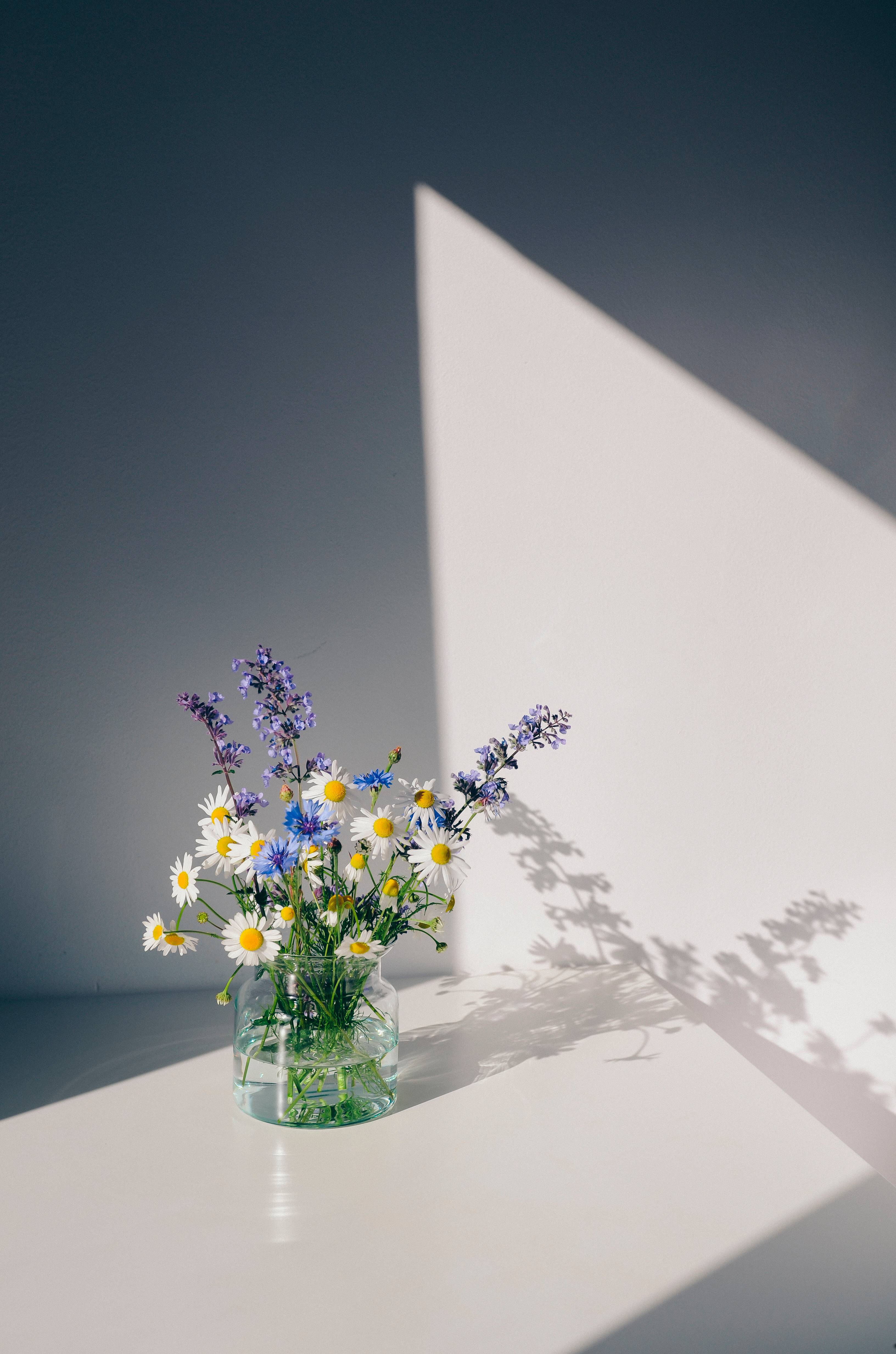 Klä dina väggar i effektfull midsommar-look! Postern "Flowers" har ett blomstrande motiv med somriga blommor i en vas som lyser upp i solljuset och lämnar en skugga på en vita/gråa bakgrunden. Ge dina väggar en ny dimension!